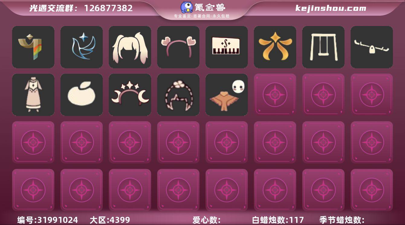 【XQ1003】 ✅渠道 :vivo✅4季双马尾跑鞋奉献流星文雀阳伞超多热门物品礼包 ✅最高:1.388最矮:13.388目前:8.375 ✅资源:蜡烛:117爱心:315翼数量:60 ✅已经毕业地图:晨岛 ✅已经毕业季节:彩染季,青鸟季,双星季,迁徙季卡 ✅稀有礼包:远行服饰,致爱装扮,光之生物,连衣裙,悦动跑鞋,影院套餐,优雅领巾,双马尾发型,桔子,鲤跃龙门,小狗头饰,玉兔,四叶草,心相印发饰,粽子发饰,小黄鸭发饰,星月头冠,金鳞耳坠,欧若拉之翼,奉献斗篷,流星斗篷,文雀斗篷,小黄鸭斗篷,青衫落拓,欧若拉之声,小海牛发饰,惊喜手杖,夏日阳伞,飞鸟纸伞,秋千,跷跷板,立式钢琴,小船 ✅热门物品:矮人面具,黑脸,书虫,正太,花环,虚荣,樱花,竖琴,雨伞