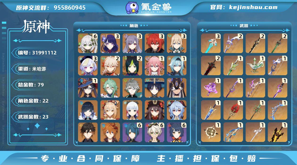 满命草神三命雷神二命万叶 自己一直在玩的号 因为工作的原因 含泪退坑