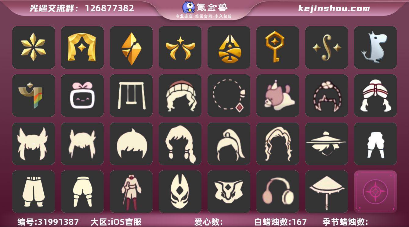 "9季白鸟白枭姆明蝙蝠运动鞋超多礼衣柜号 编号:YXB11512 区服:苹果 翼数量:202 资源:蜡烛:167 爱心:261 红蜡烛:1 季卡数:15 已毕业地图: 晨岛 云野 雨林 霞谷 墓土 毕业季节:音韵季 表演季 破晓季 欧若拉季 归巢季 筑巢季 二重奏季 姆明季 彩染季 热门礼包:蝙蝠套 绊爱套 蛛丝斗 白绒斗 妮妮斗 雪怪斗 兔拖 运动鞋 暗彩服饰 姆明尾巴 冥龙尾巴 影院套餐 有友帽 彩虹帽 奥利奥发饰 桂冠 雪花 玉兔 贝壳 四叶草 小黄鸭 神鹿角 金鳞耳坠 彩虹耳钉 KFC兑换码 必胜客兑换码 青衫落拓 欧若拉之声 折扇 秋千 花憩茶桌 野餐垫 音乐桌 必胜客披萨 大耳狗背饰 大铁头 小提琴 热门活动复刻:武士裤 白棉裤 工装裤 圣岛连体裤 击剑裤 小王子连体衣 五周年裤子 螃蟹长袍 沙滩短裤 黄鼠狼面具 红狐狸面具 修行面巾 贴符面饰 宴会围巾 圣诞铃铛 毛绒领子 系带围巾 粗辫发型 公主头 正太 书虫 高马尾 箬笠 明制大帽 郡主头 花环 虚荣 军帽 樱花头 猫猫头 遮阳草帽 红耳机 飘带耳饰 二级白斗 红金斗 黑金斗 兰花斗 羽翼斗 蔚紫斗 印花斗 蓝海龟斗 红菱纹斗 海浪斗 鱼纹斗 彩虹斗 暗彩斗 夏日粉斗 枯叶斗 雨伞 星星灯 大耳狗点心桌 女巫茶桌 ",晨岛,云野,雨林,霞谷,暮土,白鸟发型,白枭发型