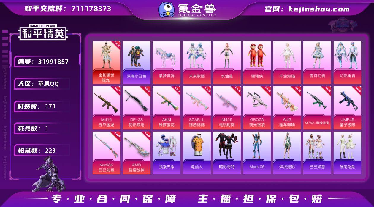 无二次苹果 手Q-4粉装-5特效枪-3载具-2粉色飞行器-58532热力值-12王牌印记-138套装-181枪皮TD26020217 【热门品类】:套装-都市猎人,套装-深海小丑鱼,套装-金羽特工,套装-忍者信条,套装-龟仙人,套装-红熊茄茄 【粉色套装】:角色-零号机款机体服,玩偶服-猪猪侠,角色-金域紫灵,粉装-极意拳锋 【粉色枪皮等级】:AKM-梦之光华(七级),SCAR-L-纯梦嫁纱(七级),AKS-74U-森灵之息(五级),Kar98K-巳巳如意(五级),DP-28-豹影疾电(五级) 【粉色载具】:兰博基尼Aventador SVJ(翡翠绿),兰博基尼Estoque(银翼灰),宾利欧陆GT敞篷(火焰橘) 【粉色枪皮】:AKM-梦之光华,SCAR-L-纯梦嫁纱,AKS-74U-森灵之息,Kar98K-巳巳如意,DP-28-豹影疾电 【粉色飞行器】:萌酷奶龙飞行器 【粉色降落伞】:百万伏特降落伞,彩虹甜喵降落伞,萌酷奶龙降落伞,电糖天使降落伞,精灵梦叶罗丽降落伞,无垠阁降落伞,炫彩糖果降落伞 【稀有套装】:套装-龟仙人,套装-巳巳如意,套装-雪国风尚,套装-炫彩糖果,套装-燕燕于飞,套装-鱼渊荷华,角色-风玲,套装-紫幽梦,套装-蓝冰羽,套装-云朵鹅,套装-雪绒豹,套装-蜜露汐语,套装-书海巡游,套装-画境星梦,套装-琴音绮想 【稀有枪皮】:AUG-冰晶雪宝,AKM-冰凉西瓜,AKM-墨染幽兰,AKM-夜灯,AKM-彩虹符号,AKM-百万伏特,AKM-霓虹街区,AKM-龙的传人,M16A4-幻世战舞者,M16A4-生命誓言,SCAR-L-炫彩节奏,SCAR-L-玉兔迎春,SCAR-L-红色方程式,SCAR-L-致命红樱,M416-糯团青竹,M416-红色方程式,M416-绯红前夜,M416-蓝色火焰,GROZA-影袭,GROZA-生命誓言,GROZA-田园牧歌,AUG-天降萌叽,AUG-甜蜜菠萝,AUG-耀粉歌者,M762-天降萌叽,M762-绯红前夜,M762-云朵鹅,Mk47-百万伏特,AC-VAL-天降萌叽,AC-VAL-快闪甜心,蜜獾-天降萌叽,蜜獾-娇憨猪猪,ACE32-画境星梦,UZI...