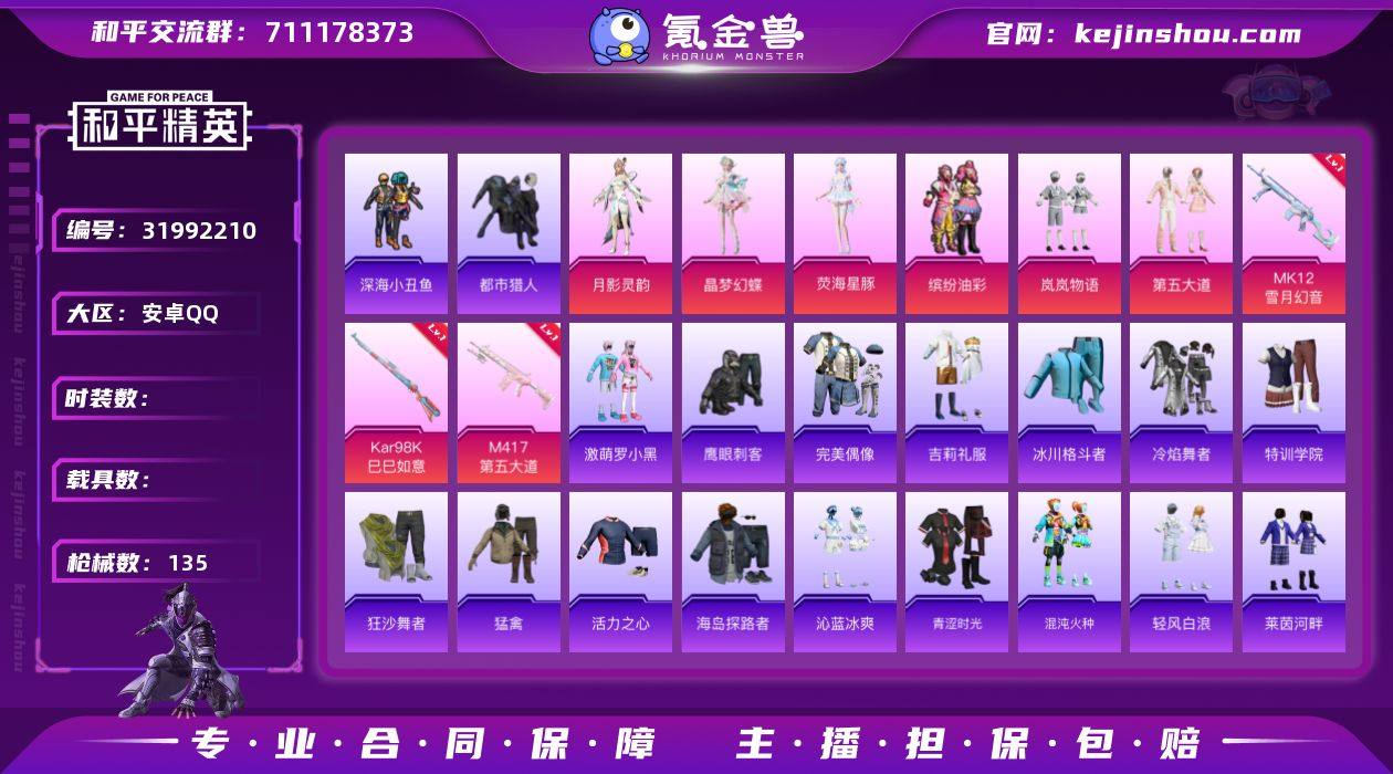 双马尾 哥特】c26691-【可二次】【因赛季更新游戏段付以上号为准!】 安卓Q-2稀有8粉装6特效枪8热门103套装135枪皮 6印记 历史超级王牌13星 【2稀有】 都市猎人 浪漫天命 【8粉装】 小舞灵珑 荧海星豚 月影灵韵 极意拳锋 晶梦幻蝶 缤纷油彩 第五大道 岚岚物语 【6特效枪】 Kar98K-巳巳如意 (5级) DP-28-豹影疾电 (5级) 12-雪月幻音 (6级) M417-第五大道 (6级) Mk14-福马献瑞 (5级) UMP45-萌骑冒险 (5级) 【8热门】 晶辉守护 鹰眼刺客 激萌罗小黑 深海小丑鱼 暗影哥特 狂沙舞者 漫步者 破蛋小黄鸡 【1飞行器】 萌物绒绒飞行器