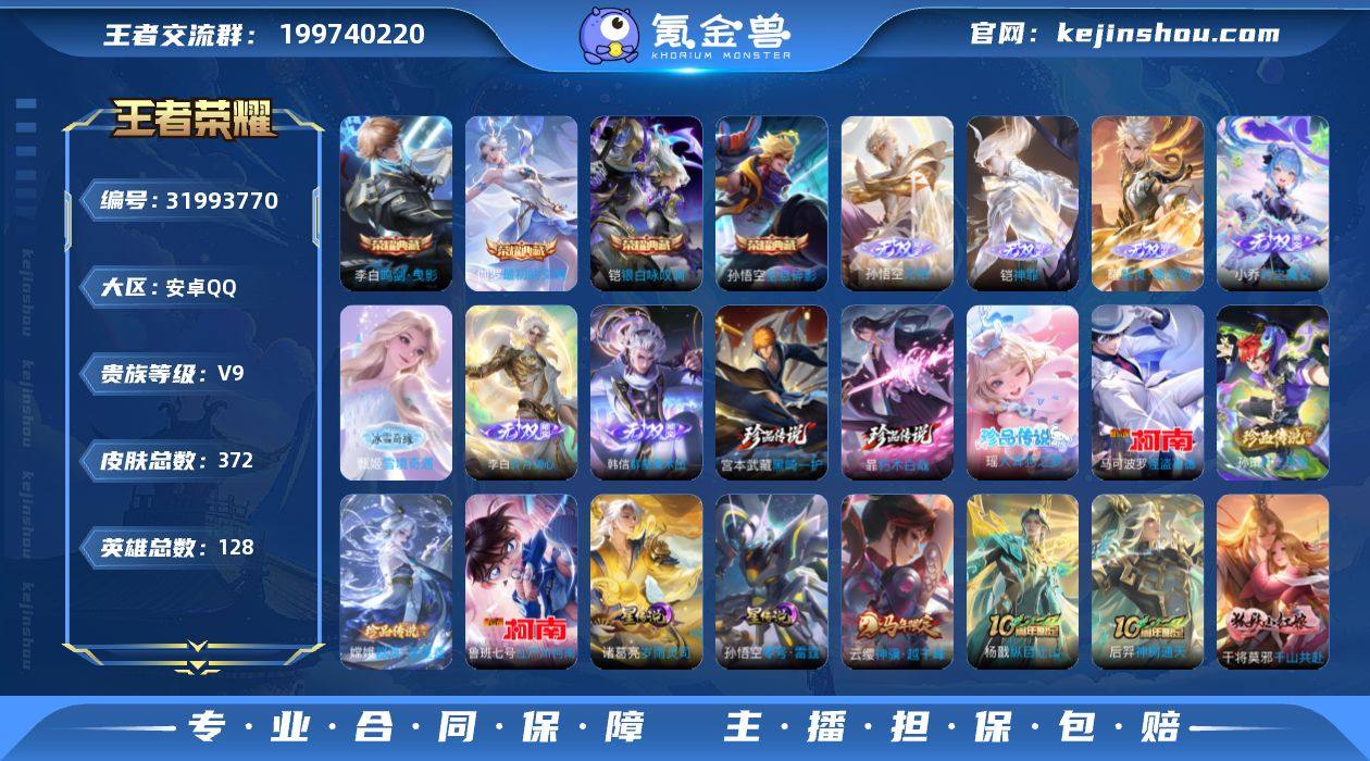 贵族等级:V9 典藏皮肤数:4 珍品无双皮肤数:0 无双皮肤数:7 珍品传说皮肤数:7 传说皮肤数:48 史诗皮肤数:120 皮肤数:372 英雄数:128 段位:无双王者