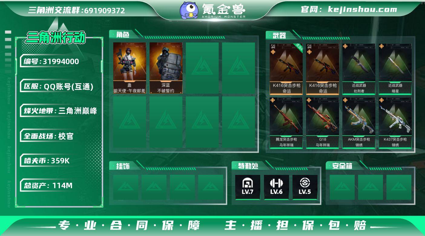【SJZG3974】总资产(M):114M/哈夫币(K):359K/哈夫币(K):359K/传说枪皮数:24/全面战场等级:50_段位:校官/烽火地带等级:60_段位:三角洲巅峰/蛊-能天使·午夜邮差/深蓝-不破誓约(S6)/近战-暗星/近战-处刑者/近战-黑鹰/K416突击步枪-命运/优品B典藏武器外观-K416突击步枪-命运/M4A1突击步枪-蚀金玫瑰/M4A1突击步枪-阿米娅/AKM突击步枪-锦绣/M16A4突击步枪-狩猎时刻/SCAR-H战斗步枪-启航/G3战斗步枪-狩猎时刻/AS Val突击步枪-蛇年祥瑞/腾龙突击步枪-捞点薯条/腾龙突击步枪-马年祥瑞/K437突击步枪-锦绣/MK47突击步枪-暗星/Vector冲锋枪-狩猎时刻/Vector冲锋枪-能天使-午夜邮差/SMG-45冲锋枪-锦绣/SR-3M紧凑突击步枪-暗星/勇士冲锋枪-能天使-午夜邮差/M250通用机枪-骑士之心/M14射手步枪-缄花/SR-25射手步枪-缄花/AWM狙击步枪-捞点薯条/.357左轮-缄花/G18-马年祥瑞/93R-捞点薯条/ASh-12战斗步枪-无极限/K416突击步枪-阿萨拉特攻/AUG突击步枪-蝮蛇/SG552突击步枪-哈夫克警备/G3战斗步枪-哈夫克警备/腾龙突击步枪-猎鳄行动/K437突击步枪-守护者/MP5冲锋枪-战术竞备/MP5冲锋枪-竞技风/Vector冲锋枪-猎鳄行动/SR-3M紧凑突击步枪-战术竞备/勇士冲锋枪-工业狂潮/MP7冲锋枪-守护者/MP...