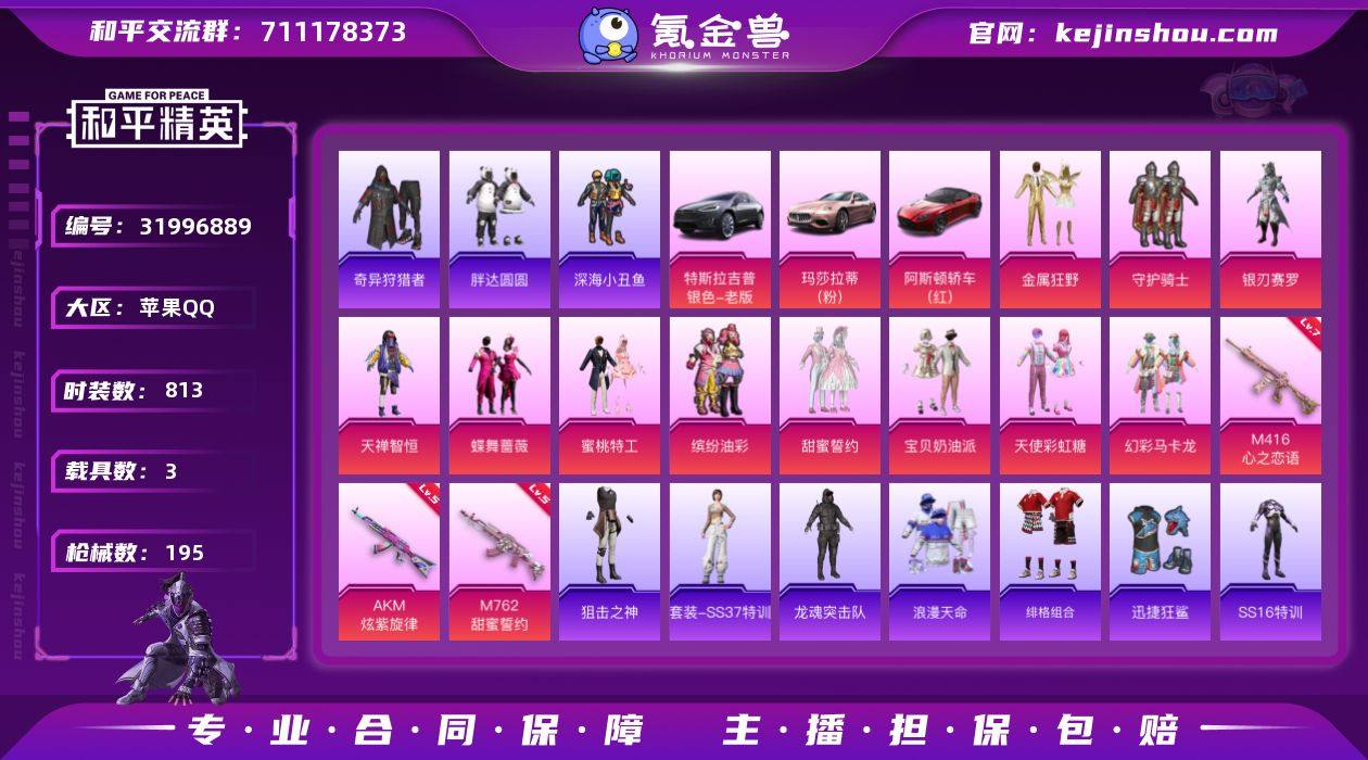 实名:可二次实名 是否支持人脸包赔:支持 粉装数量:11 特效枪数量:3 载具数:3 时装数:813 枪械数:195 奇异狩猎者,胖达圆圆,深海小丑鱼 宝贝奶油派,缤纷油彩,蝶舞蔷薇,幻彩马卡龙,金属狂野,蜜桃特工,守护骑士,天使彩虹糖,天禅智恒,甜蜜誓约,银刃赛罗 七级M416-心之恋语,五级AKM-炫紫旋律,五级M762-甜蜜誓约 阿斯顿·马丁DBS(红),玛莎拉蒂Ghibli(粉),特斯拉Model X(冷光银) 狙击之神,SS37特训,奇异狩猎者,暗影哥特,暗夜契约,冰川格斗者,冰川特警,缤纷果语,暴风机械师,北国孤狼,白光莹,冰河战士,白色伏地魔,冰爽海盐,白熊同盟,不夜海上花,冰原使者,白月香洋装,爆竹金鼠,纯白誓言,长空猛禽,丛林猎人,潮流炫酷,潮流游乐家,潮萌小黄鸭,超能勇士,传奇侦探,春日漫步,仓鼠灰灰,炽焰拳师,蝶变,大橘为重,呆萌铁蟹,都市漫游者,恶魔宝贝,风暴特警,绯格组合,风华少年志,粉红小猪,疯狂小兔子,福星高照,飞行日记,格斗专家,龟仙人,贵族骑装,湖蓝色名流,花式比心,黑色刀锋,黑色伏地魔,黄色伏地魔,黄色格斗者,灰色格斗者,黄色名流,海上生明月,黄色运动,红色运动,幻世战舞者,酒红色名流,橘黑制服,竞技达人朋克,竞技名士,竞技勇士朋克,吉莉礼服,激萌罗小黑,坚韧舞者,精神漫游,机械英豪,机械征服者,军械专家,金羽特工,金耀舞者,酷潮明星,空岛之星,科技之星,酷萌兔限定,狂沙舞者,空投萌叽,蓝彩潮人,蓝调潮人,龙的传人,凛冬战士,龙魂突击队,猎鹰,冷酷挑战者,浪漫波比,浪漫假日,浪漫天命,镭射皇者,蓝色运动,冷血极客,冷焰舞者,摩艾涂鸦,抹茶蜜豆,猛禽,萌黄之夏,魅力单车,萌趣颜团子,萌熊伴侣,弄潮海豚,逆风勇士,霓虹街区,怒火燎原,牛气冲天,牛气满满,破蛋小黄鸡,胖达圆圆,破晓战魂,青春冒险家,青春校园,拳皇97草薙京,奇迹天团,绮丽涂鸦,青年教官,青涩年华,千禧之恋,青玉碎影,荣耀,人气偶像,燃烧卡路里,热血青春,圣诞大吉,深海来使,深海小丑鱼,时空追击者,深蓝色名流,沙漠兵团,神秘领域,神奈川冲浪里,SS10特训,SS11特训,SS12特训,SS13特训,SS14特训,SS15特训,SS16特训,SS17特训,SS18特训,SS19特训,SS20特训,SS22特训,SS23特训,SS24特训,SS25特训,SS26特训,SS27特训,SS28特训,SS29特训,SS5特训,SS6特训,SS7特训,SS8特训,SS9特训,水银刺客,童话森林,太极红客,甜蜜告白,甜蜜熊情侣,特殊使命,特训学院,特种颜团子,特战装甲,WiFi精灵,维京奇缘,完美偶像,王子的夏天,小丑鱼,迅捷狂鲨,炫蓝之夏,星梦畅游,向日葵先生,夏日音浪,雪山精英,雪山征服者,核芯基因,银白舞王,迎春赐吉,原初圣火,跃动心情,耀粉歌者,阳光火鸡,摇滚舞王,银河圣歌,雨林探路者,野性战魂,鹰眼刺客,耀眼新星,战地督导,智慧之神,众神之王,治愈之星,折纸暴龙 神秘黑猫飞行器,百万伏特降落伞,春暖花开降落伞,繁花小夜曲降落伞,幻影战神降落伞,精灵迷巫降落伞,极限特训降落伞,恐龙拽拽降落伞,马卡龙降落伞,四圣焕新降落伞,甜蜜誓约降落伞,甜心宝贝降落伞,雪国幻梦降落伞,炫光之旅降落伞 卖家说:小刀