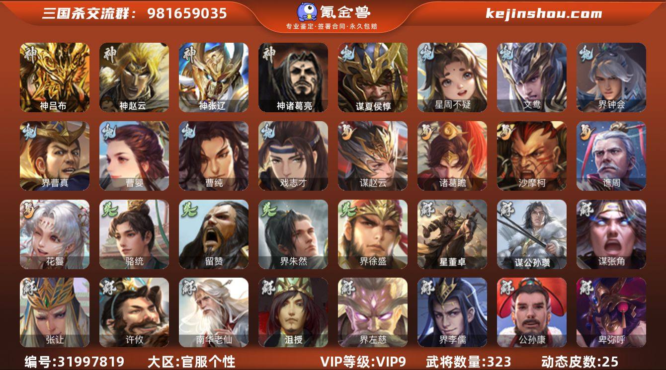 神吕布,神赵云,神张辽,神关羽,神吕蒙,神周瑜,神诸葛亮,星周不疑,文鸯,魏-司马昭,界钟会,界曹真,曹婴,曹纯,戏志才,谋夏侯惇,谋赵云,诸葛瞻,沙摩柯,谯周,花鬘,骆统,留赞,界朱然,界徐盛,谋公孙瓒,张让,麹义,南华老仙,沮授,界左慈,界李儒,公孙康,卑弥呼,谋张角,张绣,李傕,许攸,星董卓,神太史慈-勇撼日月(动态),神张辽-散敌擒孙,神周瑜-波澜不惊,星周不疑-才广志宏(动态),钟会-龙年端午(动态),曹植-龙年中秋(动态),钟会-潜蛟觊天(动态),甄姬-明珠耀躯(动态),曹丕-龙年中秋(动态),曹昂-竭战麟伤(动态),曹婴-兔年春节(动态),王元姬-鼠年冬至(动态),司马昭-昭威淮南(动态),星徐晃-斧引霹雳(动态),清河公主-魅影萦心(动态),关索-虎年七夕(动态),鲍三娘-虎年七夕(动态),卧龙诸葛-火烧博望(动态),吕蒙-剑起惊澜(动态),陆逊-龙年七夕(动态),孙权-猪年端午(动态),界孙权-猪年端午(动态),刘赞-灵魂歌王(动态),文鸯-势若万钧(动态),麹义-扬刀立威(动态),SP赵云-威名尽显(动态),左慈-蛇年限定(动...