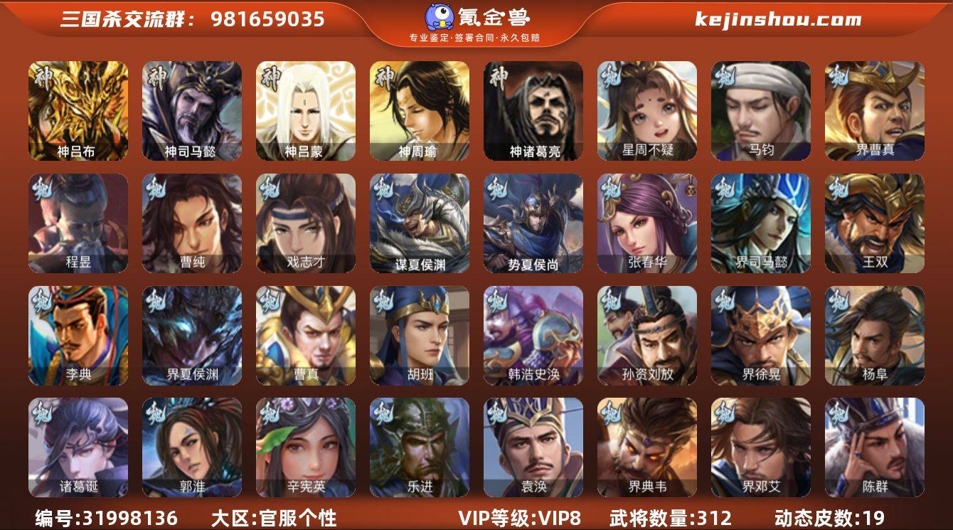 神吕布,神司马懿,神诸葛亮,星周不疑,马钧,界曹真,曹纯,戏志才,程昱,马云騄,谋赵云,诸葛瞻,周群,谯周,花鬘,界朱然,界徐盛,势太史慈,麹义,沮授,界左慈,界李儒,卑弥呼,谋张角,许攸,星董卓,兀突骨,司马昭,神吕蒙,神周瑜,势夏侯尚,SP关羽,SP曹仁,SP蔡文姬,乐进,曹昂,诸葛诞,朱灵,文聘,SP姜维,张春华,钟会,曹冲,郭淮,满宠,界王异,界曹操,界司马懿,界夏侯惇,界张辽,界许褚,界郭嘉,李典,曹真,韩浩史涣,陈群,钟繇,司马朗,王基,孙资刘放,辛宪英,界甄姬,吕虔,鲁芝,蒯越蒯良,界典韦,界荀彧,界徐晃,界曹丕,毌丘俭,界邓艾,贾逵,界曹植,界郭淮,卞夫人,界陈群,袁涣,王双,崔琰,毛玠,杨阜,谋于禁,牵招,胡班,司马伷,谋夏侯渊,界夏侯渊,SP孙尚香,夏侯霸,马良,关兴张苞,廖化,界马岱,关平,简雍,刘封,界法正,界关兴张苞,界刘备,界张飞,SP徐庶,吴懿,周仓,张松,夏侯氏,糜竺,马忠,孙乾,李严,黄皓,界黄月英,严颜,界伊籍,界卧龙诸葛,界庞统,界孟获,界祝融,陈到,界姜维,界刘禅,吕凯,杨仪,邓芝,傅肜,陈震,费祎,糜夫...