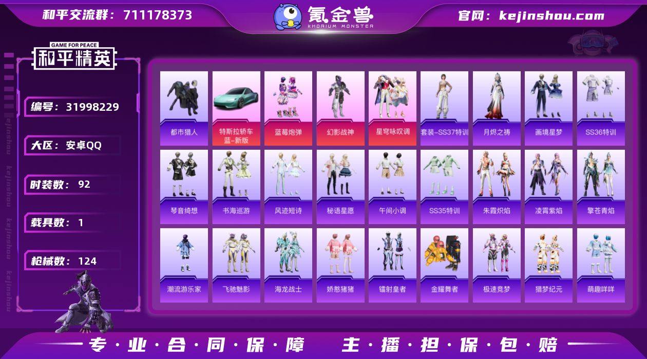 【和平精英】3粉装,7特效枪,1载具,历史最高段位:超级王牌12星 王牌印记18次 热力值:80329,183套装,253枪械,295装备,143战备;套装:套装-幻影战神,套装-蓝莓炮弹,套装-星穹咏叹调,套装-特训学院,套装-黑色伏地魔,套装-骑行爱好者,套装-竞技名士,套装-酒红色名流,套装-黄色名流,套装-猛禽,套装-长空猛禽,套装-漫步者,套装-竞技勇士朋克,套装-黎明保卫者,套装-蓝色守护者,套装-旭日情侣,套装-灼焰舞者,套装-都市猎人,套装-浪漫天命,套装-特战装甲,套装-贵族骑装,套装-特殊使命,套装-活力之心,套装-春日漫步,套装-滨海假日,套装-鹰眼刺客,套装-冰冻风暴,套装-完美偶像,套装-幻影武者,套装-特战英豪,套装-街头潮人,套装-千禧之恋,套装-怒火燎原,套装-魅力单车,套装-耀眼新星,套装-都市漫游者,套装-野性战心,套装-金羽特工,套装-狂沙舞者,套装-森林游猎者,套装-热血青春,套装-酷潮明星,套装-幻世战舞者,套装-金耀舞者,套装-蓝调潮人,套装-血色贵族,套装-青涩时光,套装-缤纷果语,套装-冰川特警,套装-海上生明月,套装-梦魇先生,套装-粉红小猪,套装-北国孤狼,套装-鹤鸣,套装-霓虹街区,套装-SS10特训,套装-SS8特训,套装-萌黄之夏,套装-夏日音浪,套装-SS9特训,套装-顽皮玉兔,套装-探宝勇士,套装-4AM战队服,套装-牛气满满,套装-SS11特训,套装-青春冒险家,套装-潮流游乐家,套装-原初圣火,套装-逆风勇士,套装-娴静芝兰,套装-萌趣颜团子,套装-特种颜团子,套装-战术大师,套装-狙击之神,套装-SS12特训,套装-牛气冲天,套装-SS18特训,套装-镭射皇者,套装-银白舞王,套装-耀粉歌者,套装-治愈之星,套装-科技之星,套装-飞行日记,套装-SS13特训,套装-SS14特训,套装-吉莉礼服,套装-星梦畅游,套装-蝎王蛇后,套装-SS15特训,套装-SS16特训...