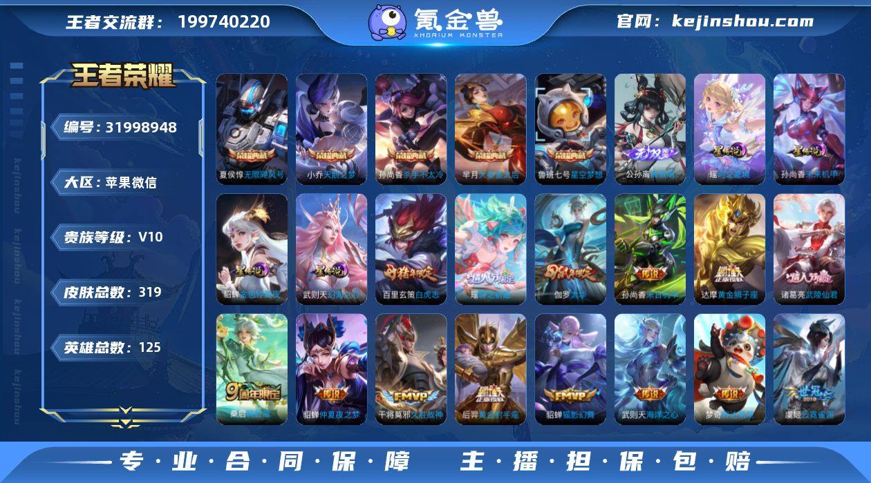 【c4083】游走31段!公孙离无双!紫瑶v10!白虎志!苹果WX-V10【特价出售,永久包赔】-尊贵铂金IV段位-125英雄-319皮肤-5典藏皮肤-1典藏英雄-1无双-16传说-96史诗 【荣耀典藏】:武则天英雄,夏侯惇无限飓风号,小乔天鹅之梦,孙尚香杀手不太冷,鲁班七号星空梦想,芈月大秦宣太后 【无双皮肤】:公孙离离恨烟 【传说皮肤】:桑启鸣野蒿,艾琳觅芳踪,瑶时之祈愿,虞姬启明星使,伽罗太华,貂蝉猫影幻舞,干将莫邪久胜战神,虞姬云霓雀翎,达摩黄金狮子座,百里玄策白虎志,梦奇胖达荣荣,后羿黄金射手座,诸葛亮武陵仙君,貂蝉仲夏夜之梦,孙尚香末日机甲,武则天海洋之心 【限定皮肤】:白起狰,公孙离离恨烟,蔡文姬夏日便利店,虞姬夏日便利店,狄仁杰阴阳师,小乔纯白花嫁,虞姬凯尔特女王,赵云皇家上将,赵云引擎之心,妲己热情桑巴,妲己时之彼端,嬴政优雅恋人,嬴政白昼王子,鲁班七号狮舞东方,庄周云端筑梦师,庄周高山流水,高渐离玩趣恶龙,芈月重明,吕布猎兽之王,周瑜赤莲之焰,夏侯惇朔风刀,甄姬游园惊梦,曹操烛龙,典韦穷奇,典韦蓝屏警告,马可波罗山海玄木吟,狄仁杰魔术师,狄仁杰万华元夜,达摩星际陆战队,达摩沙漠行僧,项羽海滩派对,老夫子圣诞老人,关羽冰锋战神,貂蝉逐梦之音,安琪拉魔法小厨娘,程咬金演武夺筹,露娜一生所爱,刘邦夺宝奇兵,王昭君凤凰于飞,王昭君午后时光,兰陵王驯魔猎人,兰陵王金庭之子,花木兰瑞麟志,花木兰默契交锋,孙悟空大圣娶亲,牛魔御旌,李元芳银河之约,李元芳云中旅人,虞姬霸王别姬,虞姬启明星使,钟馗神迹守卫,钟馗驱傩正仪,杨玉环遇见飞天,女娲朔望之晖,哪吒逐梦之翼,干将莫邪冰霜恋舞曲,干将莫邪胡桃夹子,雅典娜单词大作战,雅典娜黎明之约,蔡文姬奇迹圣诞,蔡文姬繁星吟游,太乙真人饕餮,东皇太一逐梦之光,鬼谷子原初探秘者...