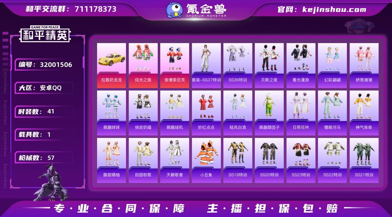 【和平精英】2粉装,4特效枪,1载具,历史最高段位:卓越王牌7星 王牌印记7次 热力值:37516,78套装,125枪械,163装备,70战备;套装:套装-音爆索尼克,套装-炫光之旅,套装-黑色伏地魔,套装-竞技名士,套装-长空猛禽,套装-黎明保卫者,套装-海岛探路者,套装-雨林探路者,套装-灼焰舞者,套装-活力之心,套装-甜蜜告白,套装-春日漫步,套装-荣耀,套装-沙漠兵团,套装-冰川特警,套装-麻辣教官,套装-小丑鱼,套装-鹤鸣,套装-霓虹街区,套装-夏日音浪,套装-萌趣颜团子,套装-战术大师,套装-狙击之神,套装-牛气冲天,套装-天籁歌者,套装-吉莉礼服,套装-SS19特训,套装-炫蓝之夏,套装-SS20特训,套装-SS21特训,套装-萌趣咩咩,套装-娇憨猪猪,套装-俏皮奶喵,套装-酸甜橘柚,套装-玉兔迎春,套装-SS22特训,套装-田园牧歌,套装-轻风白浪,套装-光之冒险,套装-SS23特训,套装-莱茵河畔,套装-神气柴柴,套装-懵萌河马,套装-妙红点点,套装-幻彩翩翩,套装-王牌教练,套装-柠萌假日,套装-SS24特训,套装-日照花林,套装-龟仙人,套装-涂山之恋,套装-SS25特训,套装-惊鸿侠骨,套装-锦衣飞扬,套装-龙的传人,套装-冰河战士,套装-SS26特训,套装-快闪甜心,套装-春光漫游,套装-空岛之星,套装-萌趣绒叽,套装-贝斯之夜,套装-SS27特训,套装-老实芭蕉,套装-SS28特训,套装-海盐绵绵冰,套装-SS29特训,套装-雏菊兔兔,套装-萝兰蝴蝶,套装-星途旅人,套装-SS31特训,套装-紫幽梦,套装-SS33特训,套装-SS32特训,套装-蓝冰羽,套装-大橘大利,套装-SS37特训,套装-SS36特训;枪皮:GROZA-彩虹符号,GROZA-田园牧歌,GROZA-懵萌河马,GROZA-海盐豹豹,GROZA-福马献瑞,G36C-懵萌河马,G36C-星穹咏叹调,M762-天降萌叽,M762-雏菊兔兔,蜜獾-娇憨猪猪,蜜獾-天降萌叽,蜜獾-虎痴许褚,蜜獾-启元战纹...