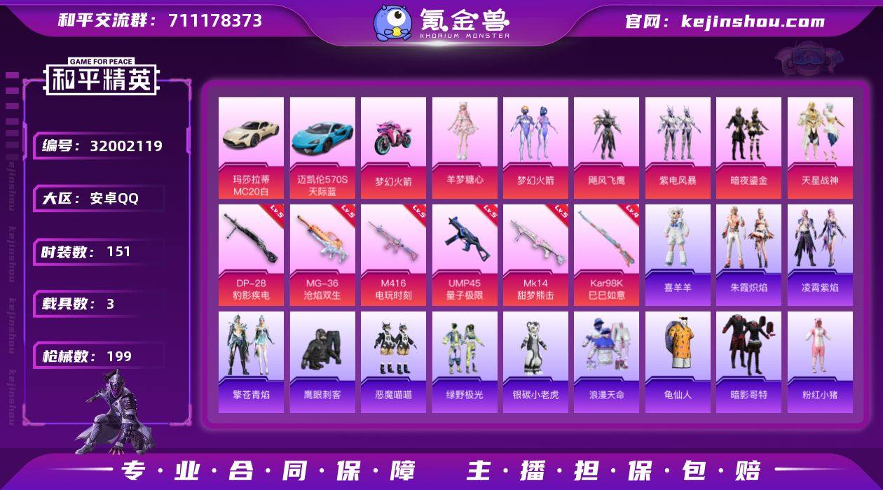 【特价出售/店主推荐】安卓 手Q-6粉装-6特效枪-3载具-4粉色飞行器-62164热力值-7王牌印记-151套装-199枪皮【热门品类】:粉装-梦幻火箭,套装-浪漫天命,套装-龟仙人,套装-暗影哥特,套装-粉红小猪,角色-Mark.06【粉色套装】:粉装-梦幻火箭,粉装-飓风飞鹰,粉装-紫电风暴,粉装-暗夜鎏金,粉装-天星战神,角色-羊梦糖心【粉色枪皮等级】:M416-电玩时刻(五级),UMP45-量子极限(五级),Kar98K-巳巳如意(四级),Mk14-甜梦熊击(五级),DP-28-豹影疾电(五级),MG-36-沧焰双生(五级)【粉色载具】:玛莎拉蒂MC20(星石白),迈凯伦570S(天际蓝),双人摩托-梦幻火箭,僚机-萌兔起飞【粉色枪皮】:M416-电玩时刻,UMP45-量子极限,Kar98K-巳巳如意,Mk14-甜梦熊击,DP-28-豹影疾电,MG-36-沧焰双生【粉色飞行器】:梦幻火箭飞行器
