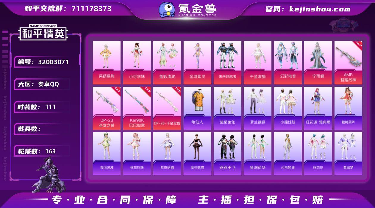 安卓 手Q-8粉装-4特效枪-0载具-3粉色飞行器-54028热力值-1王牌印记-111套装-163枪皮【热门品类】:套装-龟仙人【粉色套装】:角色-呆萌星弥,角色-小可学妹,粉装-莲影清波,角色-金域紫灵,粉装-未来领航者,角色-千金淑猫,粉装-幻彩电音,角色-宁雨蝶【粉色枪皮等级】:Kar98K-巳巳如意(五级),AMR-智耀战神(七级),DP-28-圣堂之誓(七级),DP-28-千金淑猫(五级)【粉色枪皮】:Kar98K-巳巳如意,AMR-智耀战神,DP-28-圣堂之誓,DP-28-千金淑猫【粉色飞行器】:绝色倾城飞行器,极意拳锋飞行器【粉色降落伞】:金风玉露降落伞,洛神天依降落伞,彩虹甜喵降落伞,仲夏莫吉托降落伞,镜光幻境降落伞,江南烟雨降落伞,创世·救赎降落伞,守护天翼降落伞,魔法神域降落伞,宇宙意志降落伞,拳皇·狂花道降落伞,千金淑猫降落伞,智耀战神降落伞,幻彩电音降落伞,时光之吻降落伞,冷漠罗丽降落伞,荧海星豚降落伞,炫彩糖果降落伞【稀有套装】:套装-龟仙人,套装-雪国风尚,套装-炫彩糖果,套装-雏菊兔兔,套装-萝兰蝴蝶,套装-小熊娃娃,角色-狂花道·雅典娜,套装-糖糖葫芦,套装-青团波波,套装-棉花软糖,角色-都市丽猫,角色-摩登魅猫,套装-燕燕于飞,套装-鱼渊荷华,套装-闪电轻猫,套装-粉恋花,套装-紫幽梦,套装-蓝冰羽,套装-极速光影,套装-彩虹兔,套装-云朵鹅,套装-雪绒豹,角色-灵公主