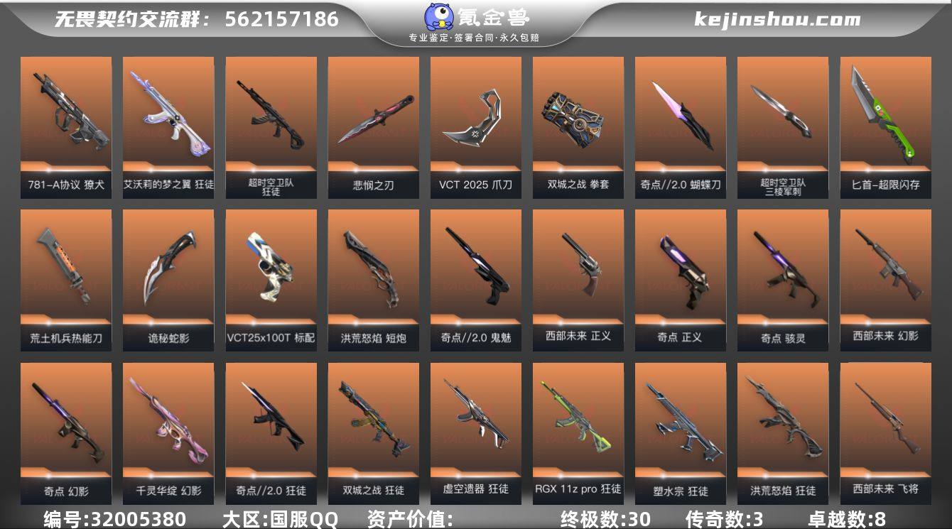 怜悯套 性价比成品账号 库存优秀 啥都不缺 单件齐全 性价比高 【套装】:无畏契约季前邀请赛套装,VCT 2025 赛季套装,西部未来套装,《双城之战》收藏套装,奇点//2.0套装,回火礼包:奇点套装,般若假面//2.0套装 【英雄】:幻棱,炼狱,维斯,暮蝶,钛狐,壹决,铁臂,捷风,雷兹,幽影,不死鸟,贤者,猎枭,蝰蛇,零,芮娜,奇乐,尚勃勒,霓虹,斯凯,夜露,星礈,K/O,海神,盖可,黑梦,钢锁 【近战武器】:近战武器-碎心裂刃,近战武器-无畏契约季前邀请赛 悲悯之刃,近战武器-超时空卫队 三棱军刺,近战武器-奇点//2.0 蝴蝶刀,近战武器-VCT 2025 爪刀,近战武器-黑波之刃,近战武器-鬼丸国纲,近战武器-双城之战 拳套,近战武器-未来开拓者,近战武器-超限闪存 匕首,近战武器-荒土机兵 热能刀,近战武器-诡秘蛇影 军刀 【狂徒】:狂徒-艾沃莉的梦之翼,狂徒-超时空卫队,狂徒-洪荒怒焰,狂徒-奇点//2.0,狂徒-双城之战,狂徒-塑水宗,狂徒-虚空遗器,狂徒-RGX 11z Pro,狂徒-般若假面//2.0,狂徒-盖世英雄,狂徒-荒土机兵,狂徒-诡秘蛇影 【幻影】:幻影-奇点,幻影-千灵华绽,幻影-西部未来,幻影-超限闪存,幻影-纳米打击,幻影-末日之翼,幻影-西部未来 【戍卫】:戍卫-浮光跃金,戍卫-逆冲蛮牛,戍卫-折光棱晶 【獠犬】:獠犬-781-A协议,獠犬-般若假面//2.0,獠犬-模拟赫兹,獠犬-逆冲蛮牛 【冥驹】:冥驹-堕天遗武,冥驹-荒土机兵,冥驹-模拟赫兹 【飞将】:飞将-西部未来,飞将-末日之翼 【莽侠】:莽侠-超限闪存,莽侠-诡秘蛇影 【战神】:战神-般若假面//2.0,战神-浮光跃金 【奥丁】:奥丁-西部未来,奥丁-纳米打击,奥丁-末日之翼 【判官】:判官-诡秘蛇影,判官-纳米打击x 【雄鹿】:雄鹿-模拟赫兹,雄鹿-逆冲蛮牛 【骇灵】:骇灵-奇点,骇灵-荒土机兵,骇灵-浮光跃金 【蜂刺】:蜂刺-超...