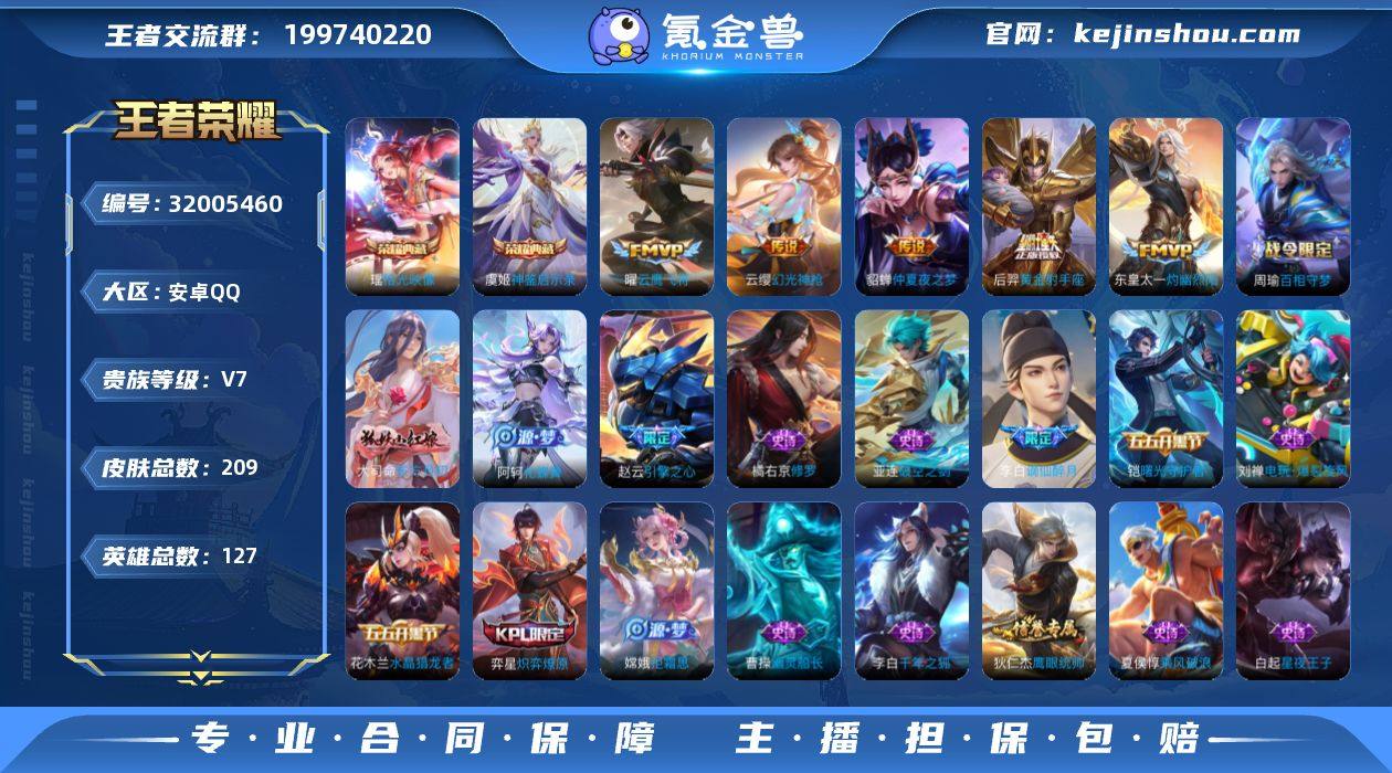 V7 2典藏 9传说 127英雄 209皮肤 可修改实名 女号 【英雄全皮】敖隐全皮,蚩奼全皮,影全皮,大禹全皮 【稀有英雄】敖隐(小龙人),大司命,韩信(韩跳跳),夏洛特(夏师傅),艾琳,橘右京(橘子),娜可露露(鸟人),不知火舞,赵云,金蝉(唐僧),戈娅 【荣耀水晶】神鉴启示录,拾光映像(瑶典藏) 【传说皮】幻光神枪,大乔-时之奇旅,黄金射手座,仲夏夜之梦(大飞蛾),云鹰飞将(小将军),灼幽烈阳 【珍宝阁皮】妄想食味,蔷薇恋人 【赛季/战令皮】噬灭天穹(s37),古海寻踪(s33),海盐诗旅(s30),擒涛扼浪(s31),潮玩骑兵,奇幻香踪,探海日志(s32),驭风魔法,玲珑珍味,流音漫舞,地狱燃心,剑破天穹(s35),天穹祈灯(s34),青焰无极,天穹之誓(s36),蔡文姬夏日便利店,虞姬夏日便利店,驱傩正仪(s24),千军破阵(s25),蓝屏警告,圣弓游侠,真爱魔法,火炮绅士,沙漠行僧(s26),幻夜卜梦,吟游魔法,金庭之子(s27),电玩高手(电玩铁子),大漠名商(s28),云中旅人(s29),落雪兰心 【史诗皮】瓦猫非猫,谪仙醉月,破空之剑,炽弈燎原,蒙犽顽岩魄,东方月初,化蝶舞,线条小狗-周瑜,九幽镇关,巫礼祀神,百相守梦-周瑜,紫霞仙子,千年之狐,江河有灵,百解令(蒙犽),高渐离燃音魔法,百相守梦(刘备),冰冠公主,偶像歌手,电玩·爆裂旋风,猫狗日记-孙策,猫狗日记-大乔,节奏热浪,修罗,水果甜心,天才门将,星夜王子,时之奇旅-安琪拉,德古拉伯爵,暗隐猎兽者,幽灵船长,鬼剑武藏,心灵战警,地狱岩魂,拒霜思,缤纷独角兽,乘风破浪,逐浪之夏,水晶猎龙者,曙光守护者,箭羽风息,金属风暴,原初追逐者,圣诞恋歌,鹰眼统帅,暗夜贵公子,未来纪元-赵云 【限定皮】鸣野蒿,时雨天司(水龙头),影龙天霄,高山流水,梁祝,李小龙,孙行者,引擎之心,山海·玄木吟(马可年限) 【普通皮】赤刃凌霄,谧流熔炉,敬我三分,铁骨偃魂,苍林狼骑,雪境奇遇-西施,星梦巡礼,劲辣红锅,玫蓝誓约,功夫炙烤,亚瑟鸿运当头,街头霸王,朵莉亚金色潮...