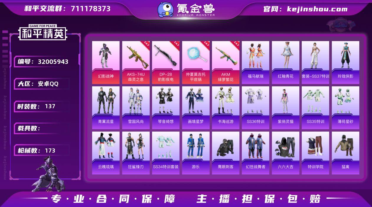 可二次实名【6特效枪1粉装 秒换绑不用等】 安卓Q区-48257热力值-137套装-173枪皮 【1粉装】 幻影战神【6特效枪】 AKS-74U-森灵之息(5级) Mk14-福马献瑞(5级) ACE32-萌骑漫游(3级) 平底锅-仲夏莫吉托(2级) AKM-绿萝繁花(5级) DP-28-豹影疾电(5级)【150热门】 浪漫天命 鹰眼刺客 破蛋小黄鸡 金羽特工 极速红龙 团圆交子 瑞龙福将 白色伏地魔 SS27特训 SS26特训 SS25特训 SS24特训 SS23特训 SS22特训 M24-歌者泠鸢 AWM-雷霆特警 SCAR-L-玉兔迎春 GROZA-田园牧歌 M762-天降萌叽 Mk47-乌木金纹 SKS-糯团青竹 UMP45-蓝色火焰 DBS-彩虹符号 M249-彩虹符号 MG3-幻世战舞者 AKM-虎虎生威 M416-蓝色火焰 GROZA-彩虹符号 M762-第五大道 长空猛禽 特训学院 青涩时光 青年教官 霓虹街区 魅力单车 六六大吉 猎鹰 蓝色运动 橘黑制服 竞技达人朋克 黄色运动 漫步者 黄色伏地魔 红色运动 黑色伏地魔 海岛探路者 M762-瑞龙福将 AA12-G-雨过天青 沙漠之鹰-雨过天青 平底锅-画境星梦 P90-紫矿核心 玲珑侠影 M16A4-雨过天青 SPAS-12-福马献瑞 M249-无面战甲 雨过天青 冰河战士 JS9-辉云木星 MG-36-薄荷星砂 GROZA-福马献瑞 SS34特训 星影赞美诗 撬棍-冰晶雪宝 AWM-天降萌叽 创世·追猎 SS18特训 福马献瑞 大橘大利 SS13特训 M200-罪夜之冕 SS14特训 SS16特训 SS17特训 SS19特训 SS20特训 SS21特训 龙魂突击队 SS29特训 SS30特训 ACE32-冰晶雪宝 青翼流星 SS28特训 M24-天降萌叽 海盐绵绵冰 M16A4-冰河战士 SS31特训 SS33特训 SS32特训 游乐 狂鲨锋刃 SS36特训 奈斯 战术大师 蜜獾-启元战纹 马上有钱 狙击之神 AKM-彩虹符号 M416-糯团青竹 破片手榴弹-海盐豹豹 UMP45-