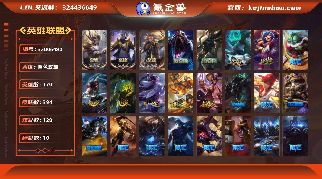 【店主推荐捡漏号!可直接换绑】【双区服】白银段位-170英雄-394皮肤-128炫彩-0终极-7神话-61限定-50传说-104史诗 【热门头像】:觅心之翼奎因头像,玉剑传说苍鸾头像 【至臻皮肤】:至臻灵能特工伊泽瑞尔,至臻魔女婕拉,至臻真实伤害亚索 【臻彩皮肤】:天龙之子卡莎飞龙乘云,冠军之刃锐雯2016凯旋圣装,闭月之颜貂蝉炫金莲华,冠军之隐劫凯旋圣装,霸天战士雷恩加尔星啸天火,泳池派对辛德拉荔枝枝连击,泳池派对奥莉安娜优雅珠光鲸,魔女阿卡丽虚荣,净雪之月莫甘娜冬虹,红莲之刃锐雯 【年限皮肤】:龙的传人李青,银龙裁决泰隆,广寒仙子嫦娥,美猴王孙悟空,烈焰美人薇恩 【海克斯皮肤】:海克斯科技雷克顿,零之枪骑赫卡里姆 【情人节限定】:甜心宝贝安妮 【冰雪限定】:圣诞精灵崔丝塔娜,圣诞糖果棒厄运小姐,狂心冰王图奇,阿木木“主人不要我了”,平安夜女神娑娜,喜庆之树茂凯,圣诞玩偶波比,圣诞驯鹿克格莫,圣诞老人布隆,冰雪节辛吉德 【神话皮肤】:十周年纪念安妮,源代码乐芙兰,海克斯科技雷克顿,零之枪骑赫卡里姆,至臻真实伤害亚索,至臻灵能特工伊泽瑞尔,至臻魔女婕拉 【限定皮肤】:钢铁军团拉克丝,养蜂人辛吉德,送披萨的小姐姐希维尔,冠军之隐劫,冠军掠夺者卡兹克,冠军之志瑞兹,Fnatic库奇,暗杀星蒙多,暗杀星努努和威朗普,暗杀星慎,SKTT1李青,SSW辛吉德,SSW图奇,SKTT1瑞兹,SKTT1奥拉夫,iG卡蜜尔,iG卡莎,FPX锤石,星之守护者伊泽瑞尔,暗裔英雄盖伦,胜利女神希维尔,胜利枪神格雷福斯,胜利女神奥莉安娜,胜利之剑亚托克斯,胜利枪神卢锡安,胜利女神瑟庄妮,胜利凤凰艾尼维亚,胜利之运崔斯特,伯爵卡萨丁,鬼影森森茂凯,无头骑士赫卡里姆,泳池派对奥莉安娜,泳池派对厄运小姐,泳池派对李青,泳池派对塔莉垭,机械迷城加里奥,蓝色忧郁崔斯特,密林猎手提莫,...