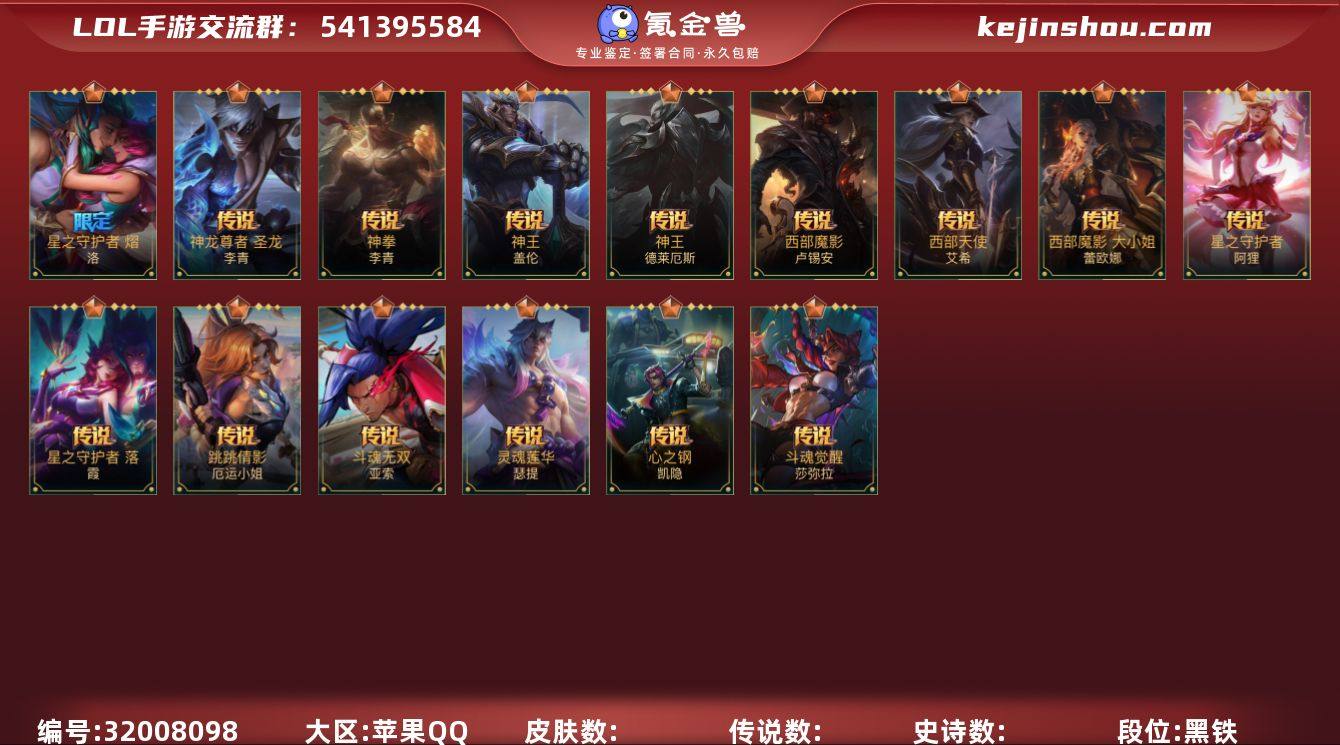 [17307241]2限定 16传说 68史诗 139皮肤 可二次 可修改实名 【段位】翡翠 【限定皮肤】星之守护者霞,星之守护者洛 【传说皮】海魔至尊 亚托克斯,神龙尊者 圣龙 李青,斗魂觉醒 莎弥拉,西部魔影大小姐蕾欧娜,心之钢凯隐,西部魔影 永恩,灵魂莲华腕豪,西部天使寒冰,西部魔影卢锡安,神王诺手,神王盖伦,神拳盲僧,星之守护者阿狸,斗魂无双亚索,跳跳倩影女枪,星之守护者 落