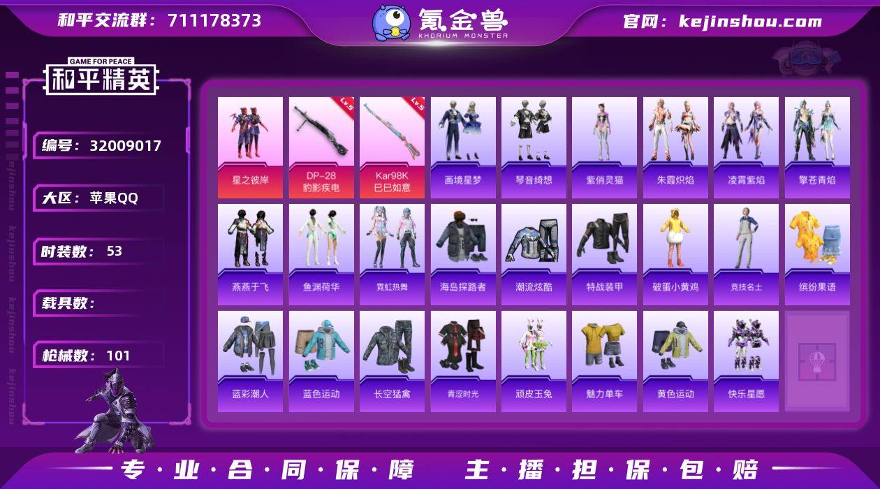 苹果 手Q-1粉装-4特效枪-0载具-3粉色飞行器-23628热力值-6王牌印记-53套装-101枪皮 【粉色套装】:粉装-星之彼岸 【粉色枪皮等级】:UMP45-萌骑冒险(五级),Kar98K-巳巳如意(五级),Mk14-福马献瑞(五级),DP-28-豹影疾电(五级) 【粉色枪皮】:UMP45-萌骑冒险,Kar98K-巳巳如意,Mk14-福马献瑞,DP-28-豹影疾电 【粉色飞行器】:炫彩糖果飞行器,彩虹独角兽飞行器,月下星之子飞行器 【粉色降落伞】:绝对恒星降落伞,星穹咏叹调降落伞,无垠阁降落伞,异瞳寒姬降落伞,炫彩糖果降落伞 【稀有套装】:套装-雪国风尚,套装-炫彩糖果,套装-马上来财,套装-燕燕于飞,套装-鱼渊荷华,套装-霓虹热舞,套装-朱霞炽焰,套装-凌霄紫焰,套装-擎苍青焰,角色-紫俏灵猫,套装-画境星梦,套装-琴音绮想 【稀有枪皮】:AUG-冰晶雪宝,AKM-影袭,AKM-破晓战魂,SCAR-L-夜灯,SCAR-L-炫彩节奏,SCAR-L-玉兔迎春,SCAR-L-红色方程式,M416-红色方程式,GROZA-影袭,AUG-耀粉歌者,AUG-绝对恒星,M762-登顶巅峰,蜜獾-天降萌叽,ACE32-画境星梦,ARX-凌霄紫焰,UZI-啾咪啾咪,UZI-影袭,UMP45-夜灯,UMP45-生命誓言,UMP45-绒宝小鹅,汤姆逊-耀粉歌者,MP5K-画境星梦,JS9-凌霄紫焰,Mini14-耀粉歌者,Mini14-绯穹魔姬,AMR-喜羊羊与灰太狼,M1加兰德-画境星梦,S12K-玩趣呆呆,S12K-破晓战魂,S12K-夜灯,DBS-彩虹符号,AA12-G-画境星梦,M249-彩虹符号,M249-破晓战魂,MG3-幻世战舞者,MG-36-凌霄紫焰,P92-凌霄紫焰,平底锅-凌霄紫焰,平底锅-画境星梦 【其他套装】:套装-海岛探路者,套装-潮流炫酷,套装-特战装甲,套装-破蛋小黄鸡,套装-竞技名士,套装-缤纷果语,套装-蓝彩潮人,套装-蓝色运动,套装-长空猛禽,套装-青涩时光,套装-顽皮玉兔,套装-魅力单车,套装-黄色运动,套装-快乐星愿 【稀有头盔】:金羽特工头盔(...