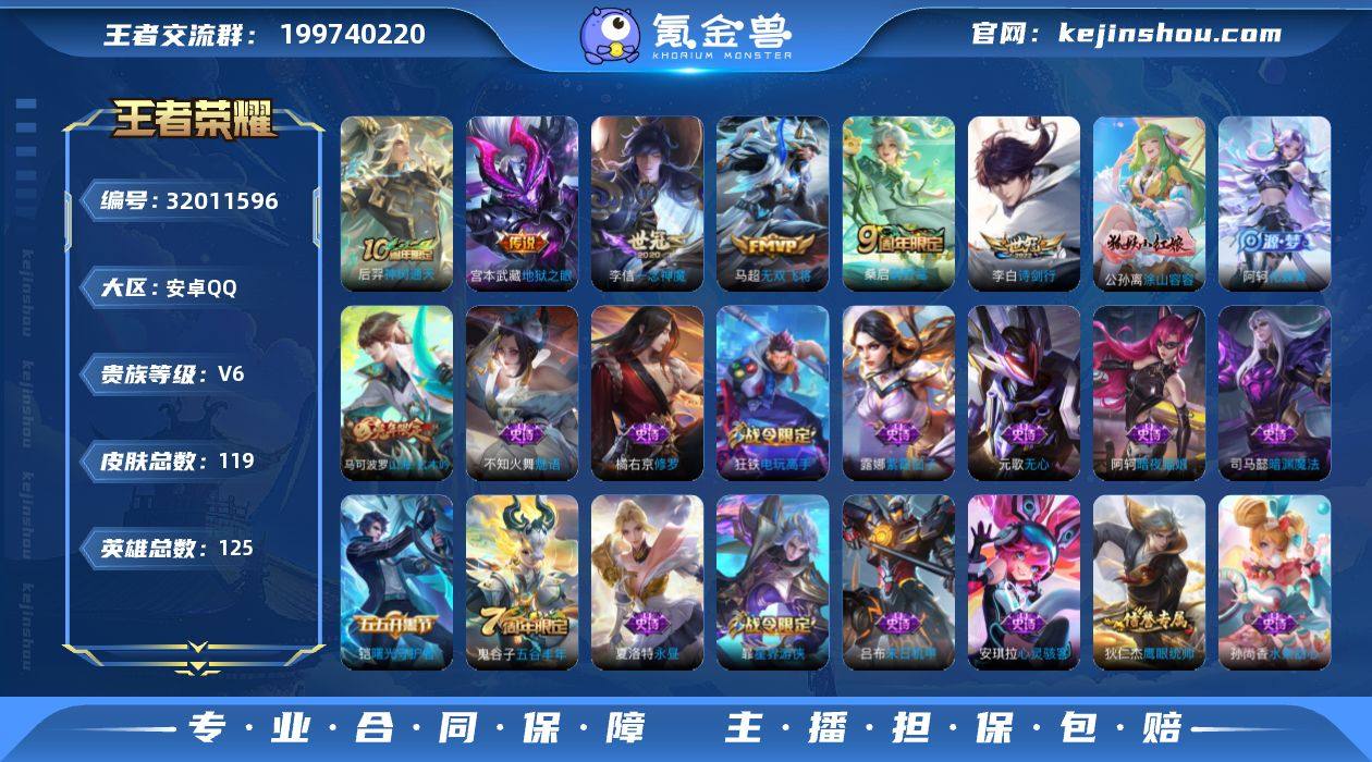可换绑【精品小号·诗剑行·无双飞将·一念神魔·地狱之眼·兔年马可·3按键】3按键 6王者印记 五级铭文120 可二次CD17860 安卓Q-V6-119皮肤-6传说-31史诗【传说皮肤】:后羿神树通天,桑启鸣野蒿,李白诗剑行,马超无双飞将,李信一念神魔,宫本武藏地狱之眼【限定皮肤】:姜子牙天穹之誓,狄仁杰阴阳师,赵云皇家上将,高渐离玩趣恶龙,元歌无心,马可波罗山海玄木吟,狄仁杰魔术师,达摩沙漠行僧,项羽海滩派对,王昭君午后时光,兰陵王金庭之子,李元芳云中旅人,鬼谷子五谷丰年,苏烈千军破阵,沈梦溪大漠名商,裴擒虎擒涛扼浪,狂铁电玩高手,嫦娥暖冬兔眠,鲁班大师探海日志,桑启海盐诗旅,暃星界游侠,张良古海寻踪,蒙犽百解令,鬼谷子天穹祈灯,沈梦溪龙舞盛年,刘邦剑破天穹,周瑜熔金海岸【年限皮肤】:马可波罗山海玄木吟【赛季限定】:苏烈千军破阵,达摩沙漠行僧,兰陵王金庭之子,沈梦溪大漠名商,李元芳云中旅人,桑启海盐诗旅,裴擒虎擒涛扼浪,鲁班大师探海日志,张良古海寻踪,鬼谷子天穹祈灯,刘邦剑破天穹,姜子牙天穹之誓【战令限定】:狂铁电玩高手,王昭君午后时光,暃星界游侠,嫦娥暖冬兔眠【史诗皮肤】:公孙离涂山容容,阿轲化蝶舞,蒙犽百解令,马可波罗山海玄木吟,暃星界游侠,元歌无心,鬼谷子五谷丰年,狂铁电玩高手,夏洛特永昼,司马懿暗渊魔法,橘右京修罗,不知火舞魅语,狄仁杰鹰眼统帅,孙策猫狗日记,程咬金功夫厨神,刘禅天才门将,铠曙光守护者,安琪拉心灵骇客,雅典娜冰冠公主,刘邦德古拉伯爵,吕布末日机甲,吕布圣诞狂欢,墨子金属风暴,妲己魅力维加斯,孙尚香水果甜心,宫本武藏鬼剑武藏,廉颇地狱岩魂,狄仁杰魔术师,赵云皇家上将,阿轲暗夜猫娘,露娜紫霞仙子【其他皮肤】:艾琳鹤鸣心笺,莱西奥踏浪烽翎,白起死霸装,苍苍林狼骑,干将莫邪雾都夜雨,周瑜熔金海...