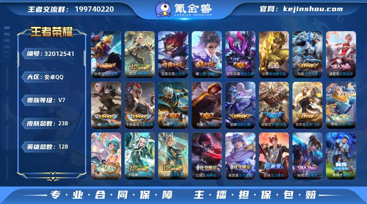 贵族7/皮肤238/典藏1/传说15/史诗61/英雄128/孙权全皮/全息碎影/云缨神骥越千峰/神树通天/山海·苍雷引/无双飞将/末日机甲-孙策/零号·赤焰/云鹰飞将/时之恋人-刘备/猫影幻舞/久胜战神/黄金狮子座/白虎志/冠军飞将/武陵仙君/地狱之眼/狰(s8)/阴阳师/皇家上将/白昼王子/云端筑梦师/玩趣恶龙/夜都怪侠/重明(s11)/猎兽之王/御风骁将/赤莲之焰/朔风刀(s17)/烛龙(s10)/穷奇(s12)/蓝屏警告/山海·玄木吟/魔术师/万华元夜(s22)/海滩派对/醍醐杖(s20)/演武夺筹(s23)/驯魔猎人/金庭之子(s27)/至尊宝/大圣娶亲/御旌(s15)/银河之约/云中旅人(s29)/驱傩正仪(s24)/遇见飞天/朔望之晖/繁星吟游/饕餮(s9)/原初探秘者(s21)/五谷丰年/烈魂/青龙志/原初追遂者/混沌棋(s18)/顽趣-梦奇/星空之诺/大漠名商(s28)/疑决卦(s19)/吟游魔法/李小龙/擒涛扼浪(s31)/御狮(s13)/御霄(s14)/山海·碧波行/纤云弄巧/御銮(s16)/梁祝/探海日志(s32)/海盐诗旅(s30)/流音漫舞/梅西/鬼谷子天穹祈灯(S34)/荣光之誓/傩神司/光弋星穹/往忆晖光/线条小狗-周瑜/线条小狗-小乔/巫礼祀神/万灵启世/龙之律动/器灵·浮梦炉/万物之道/玫瑰异探/唤灵魅影/天秀·启明/神威/修罗/魅语/晚萤/无限星赏官/鹰眼统帅/猫狗日记-大乔/节奏热浪/星夜王子/逐浪之夏/曙光守护者/冰冠公主/心灵战警/黄金分割率/德古拉伯爵/乱世虎臣/末日机甲-吕布/幽灵船长/金属风暴/女仆咖啡/魅力维加斯/摇滚巨星/水果甜心/鬼剑武藏/未来纪元-赵云/紫霞仙子/兰陵王雾影缉谜/班班快跑/溯影追猎/逐霄之志/鹤鸣心笺/径山谋武/罗小黑战记/星梦巡礼/雪境奇遇-西施/暗都幽影/功夫炙烤/妄想特派/零食大作战/乐园追猎者/潮玩探月行/幻泉雾影-海月/危途狂花/蔚蓝守将/唤灵魔甲/无双福将/乓乓大师/缤纷绘卷/瓷语鉴心/秘密基地/无尽征程/特工战影/圆桌骑士(盾山)/次元突破/炽热元素使/鲨炮海盗猫/归虚梦演-蒙犽/野...