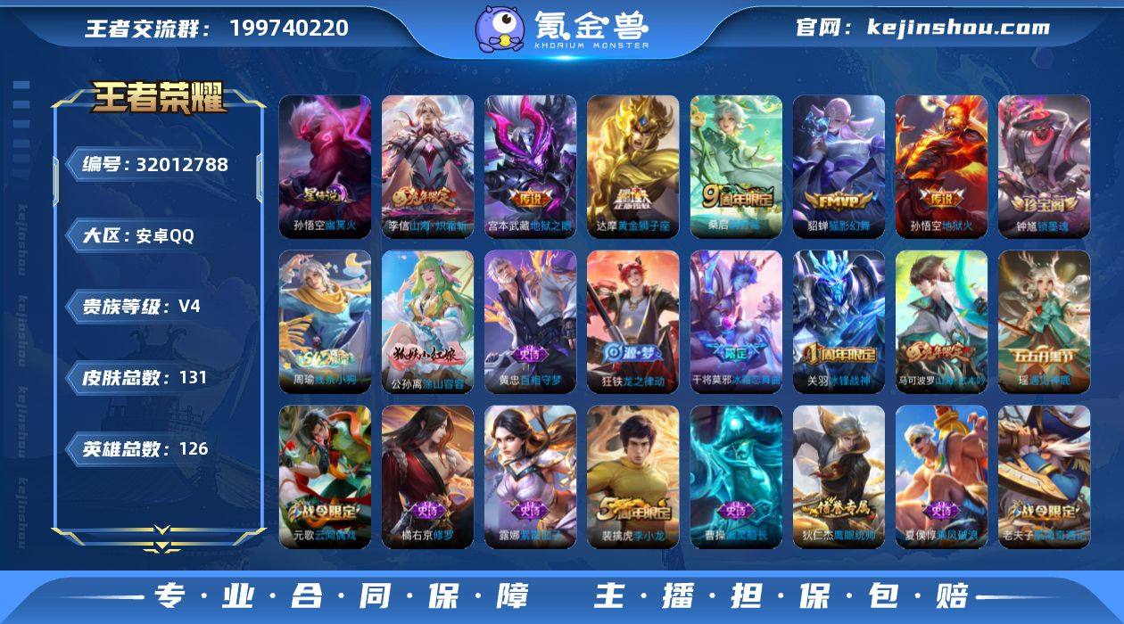 安卓Q-V4-最强王者段位-126英雄-131皮肤-6传说-35史诗 【英雄全皮】:孙权全皮 【传说皮肤】:桑启鸣野蒿,李信山海炽霜斩,貂蝉猫影幻舞,达摩黄金狮子座,宫本武藏地狱之眼,孙悟空地狱火 【限定皮肤】:姜子牙天穹之誓,狄仁杰阴阳师,墨子神迹守卫,高渐离玩趣恶龙,元歌云间偶戏,马可波罗山海玄木吟,狄仁杰万华元夜,达摩沙漠行僧,项羽海滩派对,老夫子航海奇遇记,关羽冰锋战神,程咬金演武夺筹,兰陵王金庭之子,亚瑟潮玩骑士王,李元芳云中旅人,钟馗驱傩正仪,干将莫邪冰霜恋舞曲,雅典娜黎明之约,鬼谷子原初探秘者,苏烈千军破阵,百里玄策原初追逐者,沈梦溪大漠名商,裴擒虎李小龙,李信山海炽霜斩,伽罗天狼溯光者,鲁班大师探海日志,桑启海盐诗旅,张良古海寻踪,鬼谷子天穹祈灯,周瑜熔金海岸 【年限皮肤】:李信山海炽霜斩,马可波罗山海玄木吟 【赛季限定】:鬼谷子原初探秘者,狄仁杰万华元夜,程咬金演武夺筹,钟馗驱傩正仪,苏烈千军破阵,达摩沙漠行僧,兰陵王金庭之子,沈梦溪大漠名商,李元芳云中旅人,桑启海盐诗旅,鲁班大师探海日志,张良古海寻踪,鬼谷子天穹祈灯,姜子牙天穹之誓,东皇太一噬灭天穹,太乙真人谧流熔炉,甄姬逆浪荇歌,亚瑟荣光之誓,百里玄策原初追逐者,雅典娜黎明之约,牛魔星界战将 【战令限定】:元歌云间偶戏,亚瑟潮玩骑士王,老夫子航海奇遇记,墨子神迹守卫,周瑜线条小狗 【史诗皮肤】:钟馗锁墨魂,周瑜线条小狗,公孙离涂山容容,黄忠百相守梦,狂铁龙之律动,牛魔星界战将,马可波罗山海玄木吟,雅典娜黎明之约,伽罗天狼溯光者,老夫子航海奇遇记,元歌云间偶戏,裴擒虎李小龙,百里玄策原初追逐者,瑶遇见神鹿,橘右京修罗,狄仁杰鹰眼统帅,干将莫邪冰霜恋舞曲,孙策猫狗日记,程咬金功夫厨神,刘禅天才门将,百里守约特工魅影,雅典娜冰冠公主...