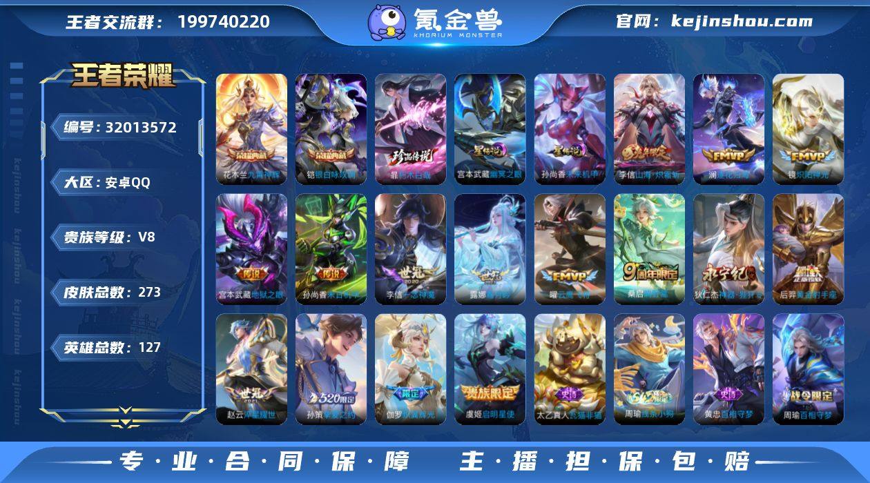王者19458,不可二次,221夺宝,2841星币,扣扣钱包无法注销,安卓Q-V8-最强王者段位-127英雄-273皮肤-2典藏皮肤-1珍品传说-15传说-63史诗 【英雄全皮】:影全皮 【荣耀典藏】:花木兰九霄神辉,铠银白咏叹调 【珍品传说】:暃朽木白哉 【传说皮肤】:桑启鸣野蒿,澜逐花归海,露娜霜月吟,伽罗炽翼辉光,李信山海炽霜斩,狄仁杰神器狴犴令,孙策挚爱之约,赵云淬星耀世,镜炽阳神光,虞姬启明星使,曜云鹰飞将,李信一念神魔,后羿黄金射手座,孙尚香末日机甲,宫本武藏地狱之眼 【限定皮肤】:白起狰,狄仁杰阴阳师,虞姬凯尔特女王,赵云皇家上将,孙尚香蔷薇恋人,高渐离死亡摇滚,高渐离玩趣恶龙,钟无艳超时空战士,扁鹊炼金王,白起夜都怪侠,芈月重明,芈月幻夜卜梦,吕布御风骁将,周瑜赤莲之焰,元歌无心,夏侯惇朔风刀,甄姬游园惊梦,甄姬落雪兰心,曹操烛龙,典韦穷奇,马可波罗山海玄木吟,狄仁杰魔术师,狄仁杰万华元夜,狄仁杰神器狴犴令,达摩沙漠行僧,项羽海滩派对,关羽冰锋战神,程咬金演武夺筹,韩信逐梦之影,王昭君午后时光,兰陵王金庭之子,牛魔御旌,后羿圣弓游侠,李元芳云中旅人,虞姬启明星使,钟馗驱傩正仪,杨玉环遇见飞天,干将莫邪真爱魔法,雅典娜黎明之约,太乙真人饕餮,黄忠火炮绅士,苏烈千军破阵,百里玄策原初追逐者,梦奇顽趣,沈梦溪大漠名商,明世隐吟游魔法,裴擒虎擒涛扼浪,狂铁御狮,狂铁电玩高手,米莱狄御霄,云中君时之祈愿,李信山海炽霜斩,伽罗炽翼辉光,盾山御銮,孙策挚爱之约,上官婉儿梁祝,嫦娥拒霜思,嫦娥暖冬兔眠,鲁班大师探海日志,盘古冰霜神祇,桑启海盐诗旅,暃星界游侠,张良古海寻踪,裴擒虎梅西,蒙恬荣光圣徽,鬼谷子天穹祈灯,刘邦剑破天穹,刘备异域游侠,周瑜熔金海岸 【年限皮肤】:吕布御风骁将,李信山海炽霜斩,马可波罗山海玄木...