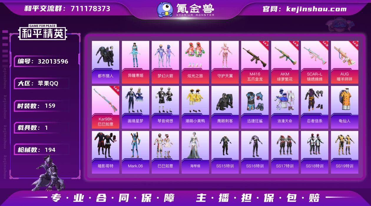 苹果【男神号 粉装-梦幻火箭/套装-都市猎人/套装-暗影哥特/角色-Mark.06/M416-五爪金龙(七级)/AUG-暖羊咩咩(五级)/凌风神骏】 手Q-4粉装-9特效枪-1载具-7粉色飞行器-62624热力值-5王牌印记-159套装-194枪皮 【热门品类】:粉装-梦幻火箭,套装-浪漫天命,套装-都市猎人,套装-忍者信条,套装-龟仙人,套装-潮萌小黄鸭,套装-暗影哥特,角色-Mark.06 【粉色套装】:粉装-梦幻火箭,粉装-炫光之旅,角色-守护天翼,角色-异瞳寒姬 【粉色枪皮等级】:AKM-绿萝繁花(五级),SCAR-L-锦绣绵绵(五级),M416-五爪金龙(七级),M416-天马神君(三级),AUG-暖羊咩咩(五级),UMP45-萌骑冒险(五级),AKS-74U-森灵之息(五级),Kar98K-巳巳如意(五级),Mk14-福马献瑞(五级) 【粉色载具】:凌风神骏 【粉色枪皮】:AKM-绿萝繁花,SCAR-L-锦绣绵绵,M416-五爪金龙,M416-天马神君,AUG-暖羊咩咩,UMP45-萌骑冒险,AKS-74U-森灵之息,Kar98K-巳巳如意,Mk14-福马献瑞 【粉色飞行器】:香车宝马飞行器,炫彩糖果飞行器,齐天大圣飞行器,踏卷乘风飞行器,云梦轻舟飞行器 【粉色降落伞】:幻影战神降落伞,梦幻火箭降落伞,甜蜜誓约降落伞,星之彼岸降落伞,环太平洋降落伞,超新星降落伞,猪猪侠降落伞,初号机 觉醒Ver.降落伞,星穹咏叹调降落伞,炫彩糖果降落伞,天马神君降落伞 【稀有套装】:套装-龟仙人,套装-巳巳如意,套装-雪国风尚,套装-炫彩糖果,角色-魂电,套装-马上有钱,角色-海琴烟,套装-画境星梦,套装-琴音绮想,套装-雨过天青,套装-红釉青花 【稀有枪皮】:AUG-冰晶雪宝,AKM-彩虹符号,AKM-影袭,AKM-破晓战魂,AKM-缤纷海域,AKM-萌趣颜团子,AKM-萝萝小趴兔,AKM-龙的传人,M16A4-幻世战舞者,M16A4-红色方程式,M16A4-莲影清波,M16A4-蓝色火焰,SCAR-L-夜灯,SCAR-L-幽秘魅影,SCAR-L-玉兔迎春,SCAR-L-甜蜜...