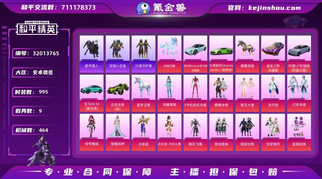【特价出售】未满15天不能注销,限制社交场景安卓V-3稀有9载具32粉装33特效枪43热门297套装464枪皮 179646热力值 22印记 历史绝世王牌15星 【3稀有】 AKM-缤纷海域 SCAR-L-粉色回忆 都市猎人 【9载具】 仰望U7先锋版(阿盖尔紫) 保时捷Taycan旅行版(冰晶蓝) 虚妄之影(炫耀紫) 宝马X6M(曼岛绿) 兰博SVJ绿色 冰绡玉鳞 合金龙骨绿色 黑曜夜骑 星梦玉骢 【32粉装】 红螳螂 蝶舞迷情 狂花道·不知火舞 绯穹魔姬 光极星 洛天依 金丰海韵 异瞳寒姬 烟云彩露 智耀战神 精灵娃娃 妙趣可丽 幻彩电音 筑梦精灵 绚丽摇曳 未来战士 第五大道 锦绣火鲤 香水柠檬 冰霜白皇 炙焰红王 霞光圣骑 王牌四分卫 烈焰拳霸 飓风飞鹰 紫电风暴 银龙傲海 暗夜玫瑰 绚金瑰梦 天之羽翼 寒光使者 蓝莓炮弹 【33特效枪】 SCAR-L-梦幻火箭 (1级) M416-五爪金龙 (7级) M416-墨龙九天 (6级) P90-金丰海韵 (4级) AKM-炫紫旋律 (7级) AKS-74U-星穹咏叹调 (1级) AKS-74U-信仰神谕 (7级) Kar98K-圣域龙灵 (3级) Kar98K-巳巳如意 (4级) MG-36-幻彩电音 (4级) Vector-绯穹魔姬 (6级) DP-28-豹影疾电 (5级) DP-28-扶摇飞仙 (4级) PKM-江南烟雨 (4级) ARX-无垠阁 (4级) 蜜獾-异瞳寒姬 (1级) M762-甜心娃娃 (7级) Mk14-精灵梦叶罗丽 (4级) AMR-智耀战神 (4级) GROZA-精灵之光 (2级) GROZA-香水柠檬 (4级) SCAR-L-童趣迷兔 (7级) UZI-绮梦青鸾 (4级) AUG-妙趣可丽 (4级) M417-第五大道 (3级) M16A4-垂柳戏鸭 (4级) SLR-暗夜玫瑰 (2级) AWM-焰龙焚天 (4级) M249-蓝莓炮弹 (4级) MG3-炙焰牛王 (4级) Vector-环太平洋 (1级) UMP45-恐龙拽拽 (2级) 破片手榴弹-瓶中星球 (6级) 【43热门】 小丑鱼 龟仙人 雪山精英 东方飞龙 呆萌铁蟹 软萌银虎 沙漠守护者 迅捷狂鲨 深海小丑鱼 大橘为重 NV战队服 梦起落英 神秘黑猫 暗夜契约 诡面顽熊 暗影哥特 迪迦奥特曼 赛罗