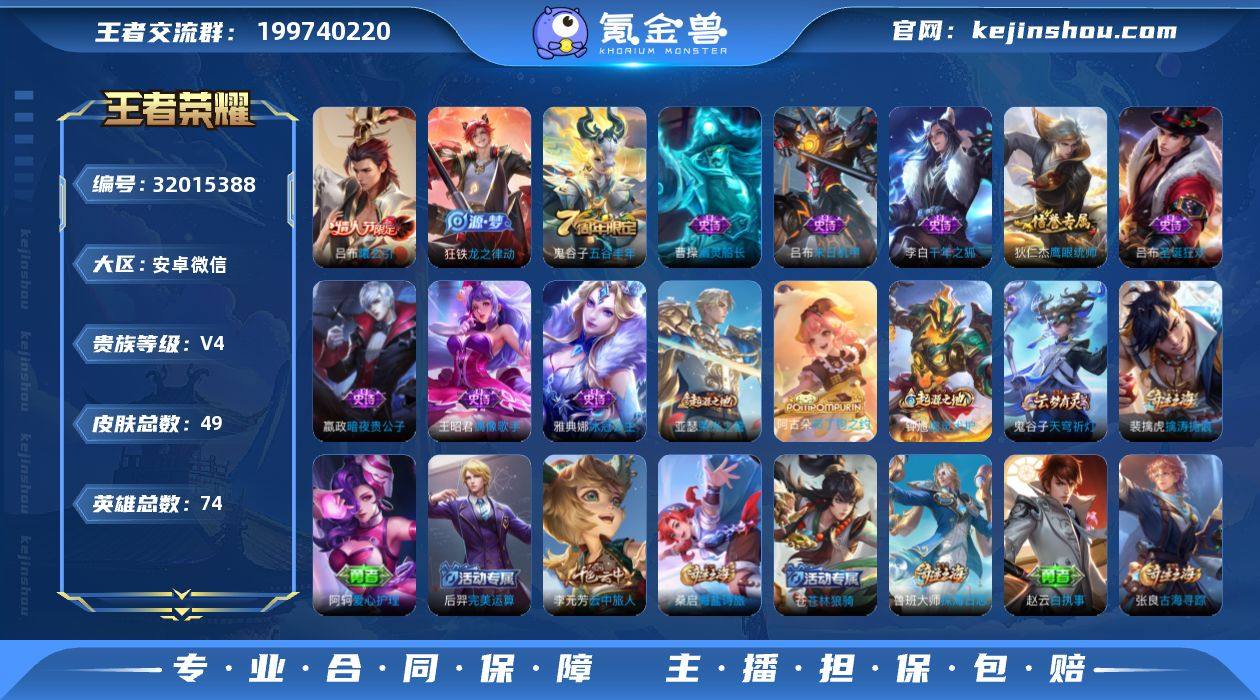 安卓微信 可二次 1传说74英雄49皮肤 曦玄引吕布 冰冠公主 千年之狐 幽灵船长 圣诞狂欢 末日机甲男 暗夜贵公子 偶像歌手 大漠名商 云中旅人 海盐诗旅 擒涛扼浪 探海日志 古海寻踪 天穹祈灯 五谷丰年 鹰眼统帅 王者荣耀账号