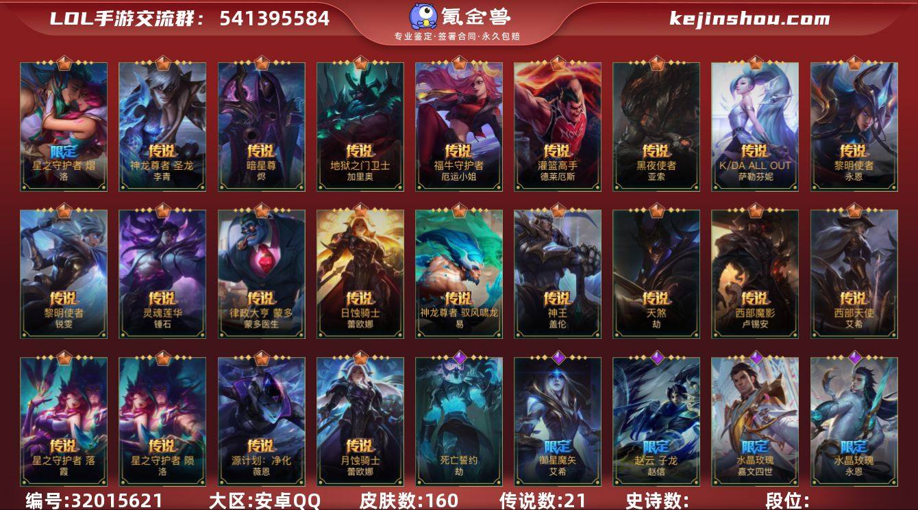 MLL1460【21传说 60史诗】安卓Q-129英雄-160皮肤-21传说 段位:黑铁【传说】暗星尊烬 地狱之门卫士加里奥 福牛守护者厄运小姐 灌篮高手德莱厄斯 黑夜使者亚索 K/DAALLOUT 萨勒芬妮 黎明使者永恩 黎明使者锐雯 灵魂莲华锤石 律政大亨蒙多医生 神龙尊者圣龙李青 神龙尊者驭风啸龙易 神王德莱厄斯 神王盖伦 天煞劫 西部魔影卢锡安 西部天使艾希 星之守护者落霞 星之守护者陨落 源计划:净化薇恩 月蚀骑士蕾欧娜【皮肤】地狱之门卫士 福牛守护者女枪 灌篮高手 黑夜使者亚索 K/DA ALLOUT萨勒芬妮 黎明使者锐雯 律政大亨 神龙尊者 驭风啸龙 神王盖伦 神王德莱厄斯 天煞劫 西部魔影卢锡安 西部天使寒冰 暗星尊 月蚀骑士蕾欧娜 灵魂莲华锤石 黎明使者永恩 星之守护者 陨 星之守护者 落 小恶魔 腥红之月卡牌 腥红之月烬 死亡誓约劫 清剿小队金克丝 秘旅探索者加里奥 末路管家 娜就去看看 欧米伽小队 魔鬼伞兵 苹果机器人 灵魂莲华亚索 战场之王亚索 圣诞老人 水晶玫瑰皇子 水晶玫瑰永恩 水晶玫瑰琴女 赵云 子龙 神龙尊者 魔龙 灵魂莲华提莫 灵魂莲华永恩 灵魂莲华莉莉娅 灭迹行者烬 御星魔矢 源计划:阴 银河魔装机神小鱼人 泳池派对剑姬 玉剑传说 无双 玉剑传说 舞剑仙 黑夜使者吸血鬼 霸天剑魔亚托克斯 神奇先驱杰斯 腥红之月剑魔 星之守护者璐璐 福牛守护者皇子 惊悚派对 福牛守护者剑姬 猎龙勇士奥拉夫 灵魂烈焰 龙腾虎跃腕豪 钢铁军团 福牛守护者牛头 梦境灵探赛娜 晨星之翎 福牛守护者诺手 暗星螳螂 冰川巨兽石头人 福牛守护者安妮 地狱火阿木木 盗梦者 秘旅探索者龙女 星之守护者拉克丝 西部魔影诺手 死亡誓约卡特 未来战士潘森 未来战士锤石 武神 s1光耀之刃 s2光耀之芒 s3光耀之灵 s4光耀之心 s5绯金魅影 s6绯金丽刃 s7绯金战斧 s8绯金鮫灵 s9王牌舰长