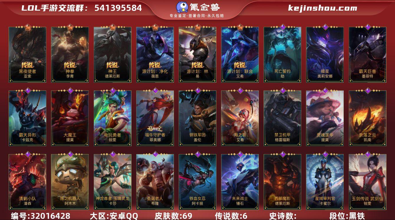 【LSC471】83英雄/69皮肤/6传说/荣耀黄金/源计划:净化/黑夜使者亚索/神拳盲僧/源计划:林/神王诺手/源计划:联合/钢铁军团/殇之机器人/暗星发条/霸天异形螳螂/圣诞老人/神龙尊者 玉境灵龙/清剿小队潘森/铁血女忍/福牛守护者剑姬/源计划:风/死亡誓约劫/大魔王/灵魂莲华提莫/源代码青钢影/星域审判官/奈落之炎/心之钢永恩/西部魔影诺手/禁卫机甲/战斗教授男枪/海之歌寒冰/霸天巨兽石头人/电玩勇者(锐雯)/玉剑传说 武剑仙/斗魂无双 艾瑞莉娅/战场之王布兰德/未来战士锤石/s1光耀之刃/s2光耀之芒/s3光耀之灵/s4光耀之心/s5绯金魅影/s6绯金丽刃/s7绯金战斧/s8绯金鮫灵/s9王牌舰长/s10王牌上将/S11王牌勇将/s12龙冕先锋/s13龙冕御盾/死亡骑士/海上霸主/苍穹之光薇恩/光耀之心发条/光耀之刃蛮王/秘密特工/龙冕先锋赵信/末路狂花/光耀之芒金克丝/龙冕御盾布隆/王牌舰长/绯金魅影(可升级)/绯金丽刃(可升级)/冰霜烈焰/西部牛仔亚索/偶像歌手/宗师级钓鱼训练师/绝命抢手/熊猫/光耀之灵/冰霜亚龙/女警官/王牌上将皇子/刺客信条/超武乾坤:电弧/战争血统/创世魔神/单身贵族/绯金战斧(可升级)/黑暗骑士寒冰/绯金鮫灵(可升级)/莲花之令刀妹/冰川勇者/风执事/黑暗骑士奥拉夫/王牌勇将