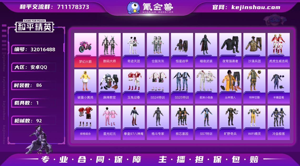 M1046662【地铁满天赋素材号1载具1粉装猫包】安卓手Q-1载具-1粉装-86套装-92枪皮-1王牌印记-英勇黄金Ⅱ-27379热力值【1载具】双人摩托-梦幻火箭【1粉装】数码大师【1稀有】AKM-百万伏特【2飞行器】黄色滑翔尾迹,梦幻火箭飞行器【3头盔】百万伏特头盔,梦幻火箭头盔,精灵迷巫头盔【2背包】百万伏特背包,梦幻火箭背包【176其它衣服和枪皮】仓鼠灰灰,SS25特训,奇迹天团,黄色名流,特种空勤,风暴特警,缤纷果语,SS19特训,SS18特训,SS24特训,传奇侦探,魅力单车,虎虎生威吉莉,麻辣教官,SS23特训,竞技勇士朋克,黄色运动,柠萌假日,丛林猎人,绯格组合,酒红色名流,格斗专家,星渊小夜曲,战地菁英,金鼠迎春,甜蜜告白,黄色格斗者,冷血极客,SS17特训,滨海厨神,SS21特训,都市魅力,恒星战甲,沙漠兵团,炽焰拳师,星光纪元,SS7特训,街头潮人,夜莺强袭者,攀登者,破蛋小黄鸡,拳皇97八神庵,SS32特训,黑色伏地魔,特训学院,霓虹街区,空投萌叽,竞技名士,灼焰舞者,特战装甲,红色运动,SS5特训,SS33特训,蓝色守护者,破晓战魂,甜蜜熊情侣,核芯基因,战地督导,玉兔迎春,白色伏地魔,SS22特训,滨海假日,猎鹰,湖蓝色名流,海盐绵绵冰,跃动心情,雪山精英,绮丽涂鸦,探宝勇士,疯狂小兔子,空岛之星,耀眼新星,SS20特训,WiFi精灵,SS6特训,暗夜武装,坚韧舞者,幻世战舞者,和平特警,炫蓝之夏,长空猛禽,旷野奇兵,半糖蓝莓,北国孤狼,福星高照,DBS-圣堂之誓,M249-破晓战魂,MG3-幻世战舞者,平底锅-空岛之星,SCAR-L-海盐豹豹,VSS-未来战士,AUG-天降萌叽,SCAR-L-红色方程式,SKS-夜灯,平底锅-拳皇97,UZI-炫彩节奏,Mini14-耀粉歌者,VSS-雷霆特警,M249-百万伏特,M249-工程核心,M762-天降萌叽,UMP45-海盐豹豹,SCAR-L-玉兔迎春,M16A4-幻世战舞者,M762-拳皇97,SCAR-L-炫彩节奏,M16A4-魔法学院,SCAR-L-雷霆特警,S686