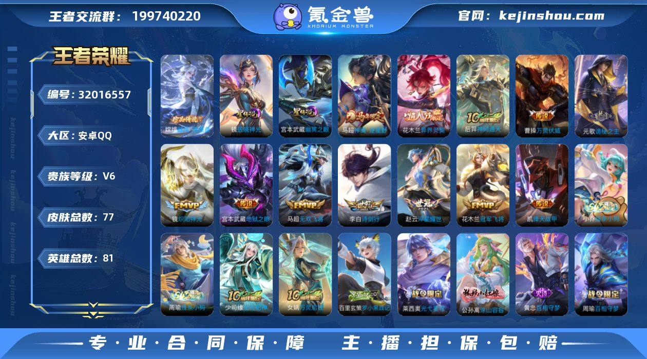 可换绑【特价精品号·嫦娥珍品·花木兰情人节·马年马超·诗剑行·赵云世冠·多传说限定号】4按键,2星传说,3王者印记,没有五级铭文,可二次CD17883,安卓Q-V6-77皮肤-1珍品传说-12传说-29史诗【英雄全皮】:元歌全皮,空空儿全皮【珍品传说】:嫦娥器灵落星盏【星元皮肤】:宫本武藏幽冥之眼,镜破晓神光【传说皮肤】:马超神骥逐星野,花木兰异界灵契,后羿神树通天,曹操万灵伏威,元歌诡秘之主,李白诗剑行,马超无双飞将,赵云淬星耀世,铠绛天战甲,镜炽阳神光,花木兰冠军飞将,宫本武藏地狱之眼【限定皮肤】:虞姬夏日便利店,狄仁杰阴阳师,赵云皇家上将,元歌云间偶戏,元歌无心,狄仁杰魔术师,项羽海滩派对,米莱狄胡桃异想国,司空震地狱燃心【赛季限定】:钟馗虚灵犬护,甄姬逆浪荇歌,亚瑟荣光之誓【战令限定】:元歌云间偶戏,米莱狄胡桃异想国,司空震地狱燃心,虞姬夏日便利店,周瑜百相守梦,孙策百相守梦,莱西奥光弋星穹,明世隐往忆晖光,周瑜线条小狗,小乔线条小狗【史诗皮肤】:周瑜线条小狗,小乔线条小狗,少司缘巫礼祀神,女娲万灵启世,百里玄策罗小黑战记,莱西奥光弋星穹,公孙离涂山容容,黄忠百相守梦,周瑜百相守梦,狂铁龙之律动,司空震地狱燃心,元歌无心,米莱狄胡桃异想国,元歌云间偶戏,狄仁杰鹰眼统帅,大乔猫狗日记,孙策猫狗日记,阿轲节奏热浪,白起星夜王子,百里守约特工魅影,花木兰水晶猎龙者,吕布末日机甲,曹操幽灵船长,妲己魅力维加斯,嬴政摇滚巨星,孙尚香水果甜心,宫本武藏鬼剑武藏,狄仁杰魔术师,赵云未来纪元,赵云皇家上将【其他皮肤】:虞姬溯影追猎,蚩奼极光幻客,曹操逐霄之志,艾琳鹤鸣心笺,明世隐往忆晖光,亚瑟荣光之誓,鬼谷子克喵,莱西奥踏浪烽翎,高渐离落日弦歌,空空儿戏梦巡演,庄周锦麟游梦,孙策百相守梦,云中君云械蓝图,甄姬逆浪...