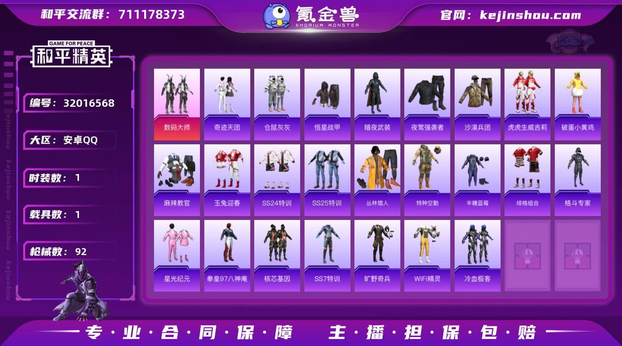 M1046662【地铁满天赋素材号1载具1粉装猫包】安卓手Q-1载具-1粉装-86套装-92枪皮-1王牌印记-英勇黄金Ⅱ-27379热力值【1载具】双人摩托-梦幻火箭【1粉装】数码大师【1稀有】AKM-百万伏特【2飞行器】黄色滑翔尾迹,梦幻火箭飞行器【3头盔】百万伏特头盔,梦幻火箭头盔,精灵迷巫头盔【2背包】百万伏特背包,梦幻火箭背包【176其它衣服和枪皮】仓鼠灰灰,SS25特训,奇迹天团,黄色名流,特种空勤,风暴特警,缤纷果语,SS19特训,SS18特训,SS24特训,传奇侦探,魅力单车,虎虎生威吉莉,麻辣教官,SS23特训,竞技勇士朋克,黄色运动,柠萌假日,丛林猎人,绯格组合,酒红色名流,格斗专家,星渊小夜曲,战地菁英,金鼠迎春,甜蜜告白,黄色格斗者,冷血极客,SS17特训,滨海厨神,SS21特训,都市魅力,恒星战甲,沙漠兵团,炽焰拳师,星光纪元,SS7特训,街头潮人,夜莺强袭者,攀登者,破蛋小黄鸡,拳皇97八神庵,SS32特训,黑色伏地魔,特训学院,霓虹街区,空投萌叽,竞技名士,灼焰舞者,特战装甲,红色运动,SS5特训,SS33特训,蓝色守护者,破晓战魂,甜蜜熊情侣,核芯基因,战地督导,玉兔迎春,白色伏地魔,SS22特训,滨海假日,猎鹰,湖蓝色名流,海盐绵绵冰,跃动心情,雪山精英,绮丽涂鸦,探宝勇士,疯狂小兔子,空岛之星,耀眼新星,SS20特训,WiFi精灵,SS6特训,暗夜武装,坚韧舞者,幻世战舞者,和平特警,炫蓝之夏,长空猛禽,旷野奇兵,半糖蓝莓,北国孤狼,福星高照,DBS-圣堂之誓,M249-破晓战魂,MG3-幻世战舞者,平底锅-空岛之星,SCAR-L-海盐豹豹,VSS-未来战士,AUG-天降萌叽,SCAR-L-红色方程式,SKS-夜灯,平底锅-拳皇97,UZI-炫彩节奏,Mini14-耀粉歌者,VSS-雷霆特警,M249-百万伏特,M249-工程核心,M762-天降萌叽,UMP45-海盐豹豹,SCAR-L-玉兔迎春,M16A4-幻世战舞者,M762-拳皇97,SCAR-L-炫彩节奏,M16A4-魔法学院,SCAR-L-雷霆特警,S686