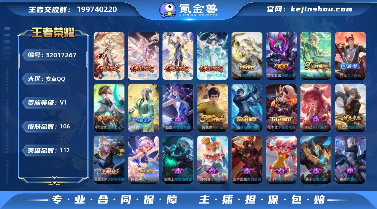 XS25 安卓Q-V0-至尊星耀II段位-112英雄-106皮肤-7传说-20史诗 【传说皮肤】:司空震愿照山河定,妲己愿照众生和,澜愿照九州拓,虞姬愿照岁时盈,桑启鸣野蒿,镜炽阳神光,宫本武藏地狱之眼 【限定皮肤】:姜子牙天穹之誓,狄仁杰阴阳师,赵云皇家上将,嬴政优雅恋人,马可波罗山海玄木吟,项羽海滩派对,百里玄策原初追逐者,裴擒虎李小龙,裴擒虎擒涛扼浪,鲁班大师探海日志,阿古朵江河有灵,张良古海寻踪,鬼谷子天穹祈灯,沈梦溪龙舞盛年,刘邦剑破天穹,周瑜熔金海岸 【年限皮肤】:马可波罗山海玄木吟,司空震愿照山河定,妲己愿照众生和,澜愿照九州拓,虞姬愿照岁时盈 【赛季限定】:裴擒虎擒涛扼浪,鲁班大师探海日志,张良古海寻踪,鬼谷子天穹祈灯,刘邦剑破天穹,姜子牙天穹之誓,东皇太一噬灭天穹,太乙真人谧流熔炉,钟馗虚灵犬护,亚瑟荣光之誓,百里玄策原初追逐者 【史诗皮肤】:狂铁龙之律动,赵怀真器灵浮梦炉,阿古朵江河有灵,马可波罗山海玄木吟,裴擒虎李小龙,百里玄策原初追逐者,狄仁杰鹰眼统帅,刘禅天才门将,铠曙光守护者,兰陵王暗隐猎兽者,小乔缤纷独角兽,花木兰水晶猎龙者,墨子金属风暴,妲己女仆咖啡,妲己魅力维加斯,嬴政优雅恋人,孙尚香水果甜心,宫本武藏鬼剑武藏,甄姬冰雪圆舞曲,赵云皇家上将 【其他皮肤】:亚瑟荣光之誓,白起死霸装,露娜命运加冕,阿古朵布丁狗之约,张良灵野札记,苏烈春野闲踪,钟馗虚灵犬护,刘备浪漫序章,戈娅玫蓝誓约,明世隐景韶洛都,少司缘灵卦秘语,达摩爆裂喵拳,东皇太一金福满堂,姜子牙星梦巡礼,西施雪境奇遇,典韦铁骨偃魂,太乙真人谧流熔炉,苍苍林狼骑,干将莫邪雾都夜雨,东皇太一噬灭天穹,周瑜熔金海岸,姜子牙天穹之誓,大司命暗都幽影,刘邦剑破天穹,钟无艳春野之旅,沈梦溪龙舞盛年,海诺时空谍影,鬼谷子天穹祈灯,...