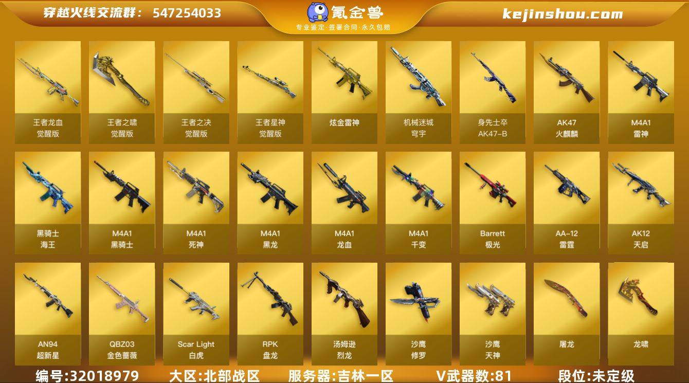 MCF883【91V 5王者 2炫金 幻神带皮肤】【等级】102【区服】吉林一区【英雄角色】5【英雄武器】81【王者级武器】王者龙血-觉醒版 王者星神-觉醒版 王者之决-觉醒版 王者之啸-觉醒版 王者之啸-觉醒版【炫金级武器】炫金雷神 炫金武士【英雄级角色】葵 樱 鹰 电竞教官-云悠悠 幻面灵狐 【音效卡 HK417-朱雀-电竞之星-竞星跃动音效卡 屠龙-电竞之星-竞星跃动音效卡 【枪械皮肤】龙啸-青青莓果 皮肤 屠龙-春桃 皮肤 火麒麟-心动糖果 火麒麟-百城 毁灭-墨兰皮肤 火麒麟-冠军之心 雷神-荣耀之魄 M4A1-千变-孔明皮肤 AK47-B-常胜将军-孙权 战神-粉色甜心皮肤 战神-流金岁月皮肤 AK47-B-常胜将军-曹操 战神-紫绶金章皮肤 AK47-B-常胜将军-刘备 火麒麟-轻羽皮肤 M200-幻神-黄忠皮肤 黑龙-暗月 黑龙-能量核心 修罗-能量核心 【英雄级武器】HK417-朱雀-电竞之星 屠龙-电竞之星 机械迷城-穹宇 AK47-火麒麟 AN94-超新星 RPK-盘龙 RPK-盘龙 汤姆逊-烈龙 汤姆逊-烈龙 汤姆逊-烈龙 汤姆逊-烈龙 汤姆逊-烈龙 加特林-炼狱 加特林-炼狱 QBZ03-金色蔷薇 barrett-金色蔷薇 Scar Light-白虎 M4A1-黑骑士 USP-雷暴 柯尔特-竞技荣光 烟雾弹-竞技荣光 高爆手雷-竞技荣光 烟雾弹-竞技荣光 烟雾弹-竞技荣光 闪光弹-竞技荣光 闪光弹-竞技荣光 闪光弹-竞技荣光 闪光弹-竞技荣光 高爆手雷-竞技荣光 高爆手雷-竞技荣光 烟雾弹-竞技荣光 烟雾弹-竞技荣光 烟雾弹-竞技荣光 高爆手雷-竞技荣光 闪光弹-竞技荣光 闪光弹-竞技荣光 高爆手雷-竞技荣光 高爆手雷-竞技荣光 闪光弹-竞技荣光 高爆手雷-竞技荣光 闪光弹-竞技荣光 烟雾弹-竞技荣光 烟雾弹-竞技荣光 M200-竞技荣光 烟雾弹-竞技荣光 烟雾弹-竞技荣光 擎天-竞技荣光 M4A1-死神 AK-47-猩红传说 M4A1-雷神 AK47-B-战神 AK47-B-常胜将军 AK47-B-战士 Barrett-暗