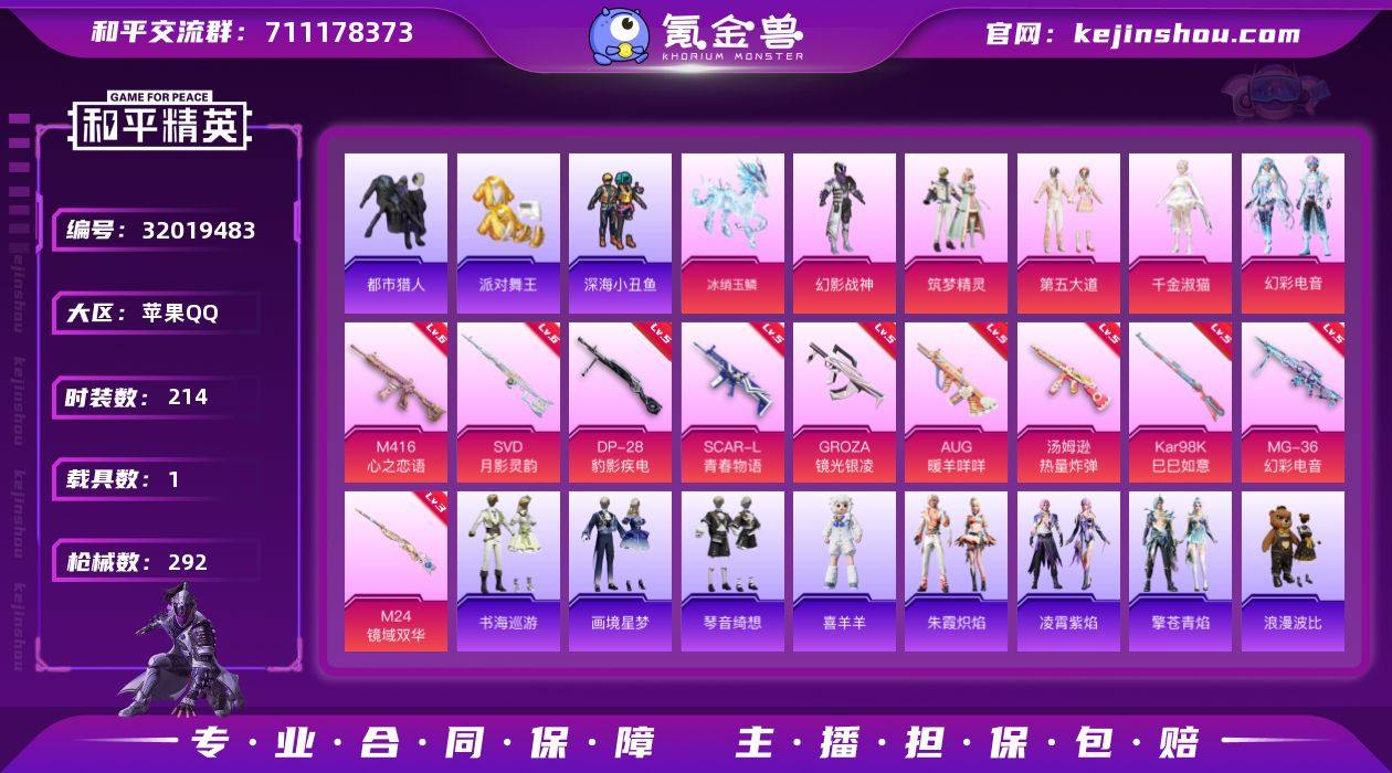 满级地铁 苹果 手Q-5粉装-12特效枪-1载具-4粉色飞行器-87971热力值-11王牌印记-214套装-292枪皮 【热门品类】:套装-浪漫天命,套装-都市猎人,套装-派对舞王,套装-深海小丑鱼,套装-忍者信条,套装-暗影哥特,套装-浪漫波比 【粉色套装】:粉装-幻影战神,粉装-筑梦精灵,粉装-第五大道,角色-千金淑猫,粉装-幻彩电音 【粉色枪皮等级】:SCAR-L-青春物语(五级),M416-心之恋语(六级),GROZA-镜光银凌(五级),AUG-暖羊咩咩(五级),汤姆逊-热量炸弹(五级),Kar98K-巳巳如意(五级),M24-镜域双华(三级),Mk14-福马献瑞(三级),SVD-月影灵韵(六级),AA12-G-萌骑幻想(三级),DP-28-豹影疾电(五级),MG-36-幻彩电音(五级) 【粉色载具】:冰绡玉鳞 【粉色枪皮】:SCAR-L-青春物语,M416-心之恋语,GROZA-镜光银凌,AUG-暖羊咩咩,汤姆逊-热量炸弹,Kar98K-巳巳如意,M24-镜域双华,Mk14-福马献瑞,SVD-月影灵韵,AA12-G-萌骑幻想,DP-28-豹影疾电,MG-36-幻彩电音 【粉色飞行器】:炫彩糖果飞行器,龙翔九天飞行器,万象金身飞行器,飞天猪飞行器 【粉色降落伞】:幻影战神降落伞,橘柚倾心降落伞,垂柳戏鸭降落伞,镜域双华降落伞,精灵梦叶罗丽降落伞,临安公主降落伞,月影灵韵降落伞,金蛇镇世降落伞,智耀战神降落伞,幻彩电音降落伞,荧海星豚降落伞,灵猫魔法师降落伞,绯穹魔姬降落伞,喜羊羊与灰太狼降落伞,炫彩糖果降落伞,罪夜之冕降落伞 【稀有套装】:套装-巳巳如意,套装-雪国风尚,套装-炫彩糖果,套装-马上有钱,套装-糖糖葫芦,套装-青团波波,套装-棉花软糖,角色-临安公主,角色-怀庆长公主,套装-燕燕于飞,套装-鱼渊荷华,角色-蜜桃派对,套装-紫幽梦,套装-蓝冰羽,角色-猎影月神,套装-星渊小夜曲,套装-霓虹热舞,套装-极速光影,套装-彩虹兔,套装-云朵鹅,套装-雪绒豹,角色-乐音,套装-蓝...