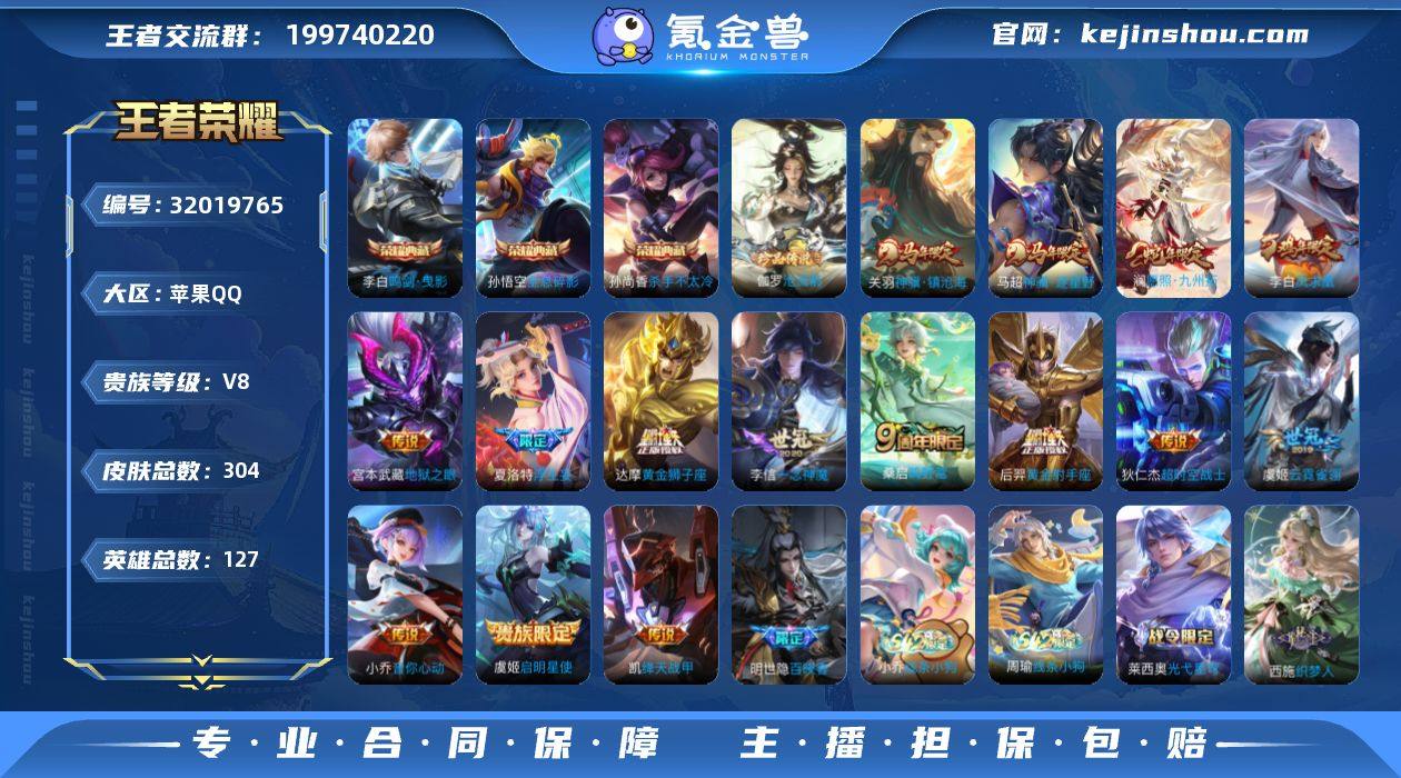 贵族等级:V8 典藏皮肤数:3 珍品无双皮肤数:0 无双皮肤数:0 珍品传说皮肤数:1 传说皮肤数:15 史诗皮肤数:90 皮肤数:304 英雄数:127 段位:王者