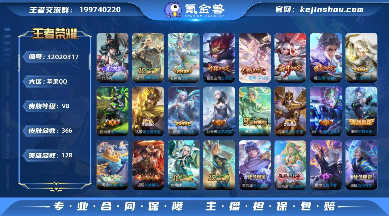 xy119 苹果q区V8 366皮 1无双15传说 75段发育路 全皮阿里