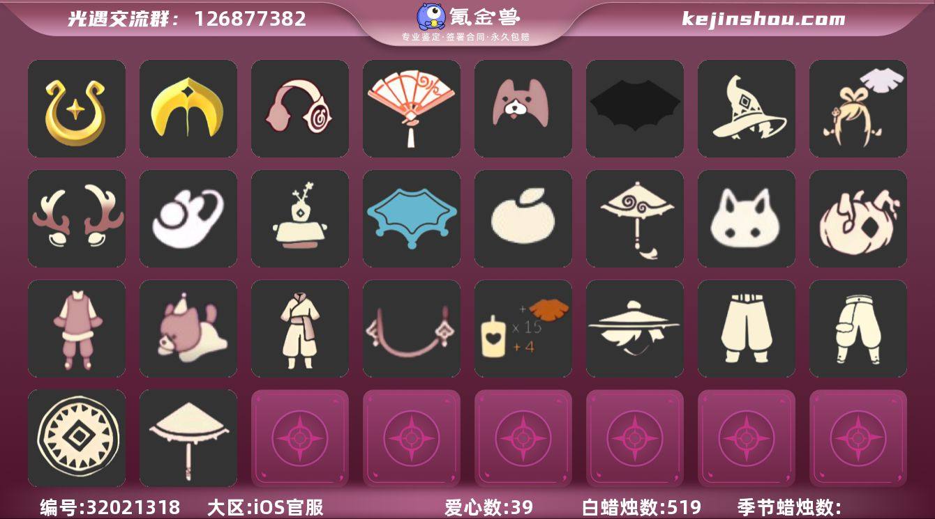 11季10翼白枭武士裤暗彩装扮蝙蝠斗巫师帽圣诞鹿角透明蝶翼鸟羽斗篷 资源:蜡烛 1922 爱心301 红烛224 翼10 已毕业地图:雨林 霞谷 毕业季节: 表演季 破晓季 欧若拉季 追忆季 夜行季 归巢季 姆明季 彩染季 青鸟季 双星季 迁徙季季卡 毕业季节物品:燕尾斗篷 黄眉企鹅面具 白枭发型 双翼遥鲲斗篷 冥龙斗篷 留辨蘑菇头 高领舞服 透明蝶翼斗 肩带 追忆之书 棕熊面具 绒毛斗篷 五塑彩羽发 五塑彩带斗 姆明抱枕 姆明大伞 姆明长裙 彩染围巾斗篷 辉光羚羊面具 青鸟面饰 青鸟斗篷 蓝色星星光环 暮星斗篷 稀有礼包: 青衫落拓礼包 绊爱 橘子发饰 雪花发夹 蝙蝠斗 南瓜头 巫师帽 星月头冠 圣诞鹿角 祥云雨伞 热门裤子:背带裤 绑带舞服 妮妮长裙 海洋武士裤 阔腿牛仔裤 白棉裤 搓澡巾 紧身连体衣 武士裤 小丑服 女仆围裙 红色流珠裙 探险燕尾服 兔年套装 暗彩装扮 热门面具:矮人面具 狐狸面具 黄眉面具 红兔面具 一字眉 盲僧眼罩 棕熊面具 向导面具 青鸟面具 红脸蛋 黑脸 粽叶面具 鸟羽面具 热门发型:海藻头 爆炸头 雨妈 卡卡 平菇 箬笠 蝴蝶结 公主头 粗辫 水母头 书虫 正太头 高马尾 绿丝带 虚荣 白枭 圆环发辫 留辫蘑菇头 李逍遥发型 彩色脏辫 彩羽发型 春丽丸子头 樱花头 马蹄莲发型 南瓜头 巫师帽 猫猫头 女巫发型 绊爱发型 青衫落拓发型 热门头饰:双星季面饰 橘子发饰 珊瑚发饰 雪花发饰 晃悠悠 红耳机 星月头冠 探险耳机 圣诞鹿角 热门斗篷:五角星斗篷 花瓣斗篷 红金斗篷 黑金斗篷 燕尾服斗篷 暗花斗篷 冥龙斗篷 遥鲲长斗 展翼圆环斗 透明蝶翼 小浣熊斗篷 毛绒斗 布丁斗篷 布条斗篷 史力奇 斗篷 姆明季斗篷 镂空斗篷 镂空三条斗 彩染季围巾斗篷...