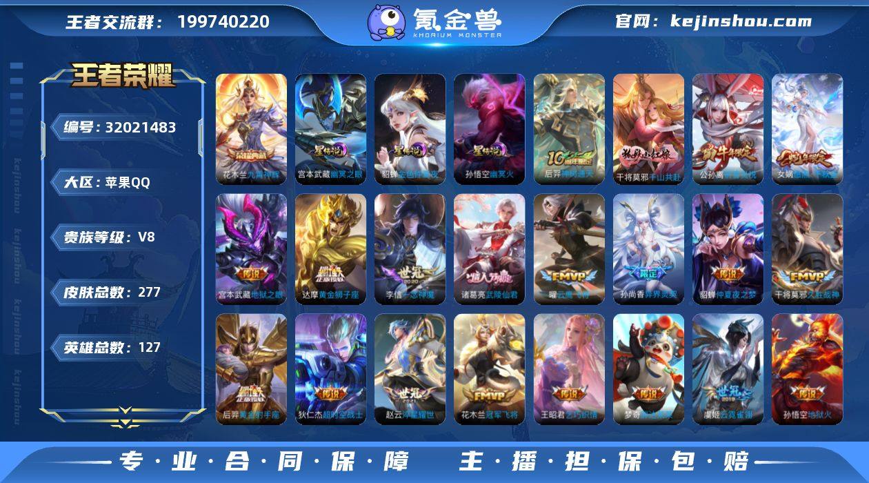 苹果Q-V8-至尊星耀IV段位-127英雄-277皮肤-1典藏皮肤-21传说-88史诗【英雄全皮】:孙权全皮【荣耀典藏】:花木兰九霄神辉【传说皮肤】:后羿神树通天,干将莫邪千山共赴,女娲愿照千秋盛,孙尚香异界灵契,赵云淬星耀世,王昭君乞巧织情,公孙离祈雪灵祝,虞姬启明星使,曜云鹰飞将,李信一念神魔,干将莫邪久胜战神,虞姬云霓雀翎,达摩黄金狮子座,花木兰冠军飞将,梦奇胖达荣荣,后羿黄金射手座,诸葛亮武陵仙君,貂蝉仲夏夜之梦,宫本武藏地狱之眼,孙悟空地狱火,狄仁杰超时空战士【限定皮肤】:狄仁杰阴阳师,赵云皇家上将,嬴政优雅恋人,孙尚香蔷薇恋人,孙尚香异界灵契,鲁班七号狮舞东方,庄周高山流水,高渐离死亡摇滚,芈月重明,芈月白晶晶,元歌云间偶戏,夏侯惇朔风刀,甄姬女儿国国王,曹操烛龙,典韦穷奇,典韦蓝屏警告,马可波罗逐梦之星,马可波罗暗影游猎,狄仁杰魔术师,狄仁杰万华元夜,达摩沙漠行僧,项羽海滩派对,老夫子醍醐杖,关羽冰锋战神,程咬金演武夺筹,韩信逐梦之影,兰陵王金庭之子,花木兰青春决赛季,花木兰默契交锋,亚瑟潮玩骑士王,孙悟空至尊宝,孙悟空孙行者,牛魔御旌,李元芳云中旅人,虞姬霸王别姬,虞姬启明星使,钟馗神迹守卫,钟馗驱傩正仪,女娲朔望之晖,干将莫邪冰霜恋舞曲,蔡文姬繁星吟游,鬼谷子原初探秘者,鬼谷子五谷丰年,诸葛亮武陵仙君,大乔白鹤梁神女,铠青龙志,苏烈千军破阵,弈星混沌棋,公孙离祈雪灵祝,沈梦溪大漠名商,明世隐疑决卦,裴擒虎李小龙,裴擒虎擒涛扼浪,狂铁御狮,米莱狄御霄,云中君纤云弄巧,伽罗天狼溯光者,盾山御銮,猪八戒西部大镖客,嫦娥拒霜思,鲁班大师探海日志,镜匿光追影者,桑启海盐诗旅,张良古海寻踪,蒙恬荣光圣徽,鬼谷子天穹祈灯,沈梦溪龙舞盛年,刘邦剑破天穹,刘备异域游侠,周瑜熔金海岸【年限皮肤】:铠...