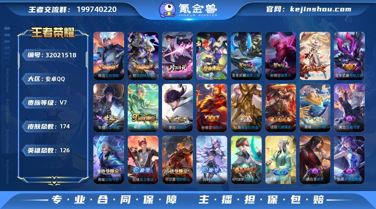 【YX823】贵族7/皮肤174/典藏2/传说8/史诗53/英雄126/孙权全皮/银白咏叹调/弑枪猎影/幽冥之眼/幽冥火/朽木白哉/时之奇旅-孙策/云缨神骥越千峰/愿照·九州拓/鸣野蒿/诗剑行/一念神魔/黄金白羊座/地狱之眼/地狱火/蒙犽顽岩魄/蔡文姬夏日便利店/虞姬夏日便利店/天穹之誓(s36)/阴阳师/皇家上将/山海·玄木吟/魔术师/海滩派对/金庭之子(s27)/银河之约/神迹守卫-钟馗/胡桃夹子/李小龙/擒涛扼浪(s31)/纤云弄巧/梁祝/玲珑珍味/探海日志(s32)/海盐诗旅(s30)/驭风魔法/流音漫舞/地狱燃心/江河有灵/古海寻踪(s33)/蒙恬荣光圣徽/高渐离燃音魔法/妲己灵卜魔法/鬼谷子天穹祈灯(S34)/蔬乡物语(鲁班七号)/蔬乡物语(李元芳)/剑破天穹(s35)/青焰无极/苍威无极/熔金海岸/噬灭天穹(s37)/谧流熔炉/虚灵犬护/逆浪荇歌/荣光之誓/星界战将/九幽镇关/破空之剑/神迹守卫/茶境仙/访茗客/百相守梦-周瑜/百相守梦-孙策/线条小狗-周瑜/百相守梦-黄忠/龙之律动/化蝶舞/器灵·浮梦炉/热力回旋/修罗/箭羽风息/猫狗日记-孙策/节奏热浪/逐浪之夏/曙光守护者/特工魅影/心灵骇客/冰冠公主/暗隐猎兽者/乘风破浪/德古拉伯爵/水晶猎龙者/乱世虎臣/末日机甲-吕布/幽灵船长/圣诞狂欢/金属风暴/魅力维加斯/水果甜心/鬼剑武藏/地狱岩魂/冰雪圆舞曲/未来纪元-赵云/暗夜猫娘/紫霞仙子/电玩小子/班班快跑/溯影追猎/鹤鸣心笺/径山谋武/罗小黑战记/克喵/踏浪烽翎/死霸装/小满鸭/命运加冕/布丁狗之约/灵野札记/浪漫序章/玫蓝誓约/景韶洛都/金福满堂/星梦巡礼/雪境奇遇-西施/铁骨偃魂/苍林狼骑/敬我三分/暗都幽影/妄想特派/零食大作战/西部游侠/劲辣红锅/乐园追猎者/潮玩探月行/潮玩造梦师/唤灵魔甲/无双福将/乓乓大师/秘密基地/次元突破/鲨炮海盗猫/野性能量/虹云星官/守护之力/坚韧之力/幻乐之宴/掌控之力/功夫老勺/命运角斗场/幻想奇妙夜/海滩丽影/龙腾万里/汉昭烈帝/...