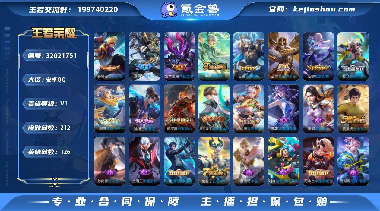 安卓Q-V0-最强王者段位-126英雄-212皮肤-1典藏皮肤-7传说-49史诗【英雄全皮】:影全皮【荣耀典藏】:孙悟空全息碎影【传说皮肤】:桑启鸣野蒿,夏侯惇霜北刀,张飞百相守梦,吕布怒海麟威,貂蝉猫影幻舞,后羿黄金射手座,宫本武藏地狱之眼【限定皮肤】:夏侯惇霜北刀,狄仁杰阴阳师,赵云皇家上将,周瑜赤莲之焰,夏侯惇朔风刀,马可波罗山海玄木吟,狄仁杰魔术师,狄仁杰万华元夜,项羽海滩派对,老夫子醍醐杖,兰陵王驯魔猎人,兰陵王金庭之子,孙悟空美猴王,孙悟空至尊宝,张飞百相守梦,李元芳云中旅人,钟馗驱傩正仪,女娲朔望之晖,干将莫邪胡桃夹子,蔡文姬繁星吟游,鬼谷子原初探秘者,鬼谷子五谷丰年,苏烈千军破阵,弈星混沌棋,沈梦溪大漠名商,沈梦溪匿光破解者,明世隐疑决卦,裴擒虎李小龙,裴擒虎擒涛扼浪,上官婉儿梁祝,西施玲珑珍味,鲁班大师探海日志,桑启海盐诗旅,戈娅驭风魔法,艾琳流音漫舞,司空震地狱燃心,阿古朵江河有灵,张良古海寻踪,蒙犽百解令,鬼谷子天穹祈灯,姬小满妄想食味,鲁班七号蔬乡物语,李元芳蔬乡物语,刘邦剑破天穹,程咬金群星魔术团,镜青焰无极,项羽苍威无极,周瑜熔金海岸【年限皮肤】:孙悟空美猴王,马可波罗山海玄木吟【赛季限定】:夏侯惇朔风刀,弈星混沌棋,明世隐疑决卦,老夫子醍醐杖,鬼谷子原初探秘者,狄仁杰万华元夜,钟馗驱傩正仪,苏烈千军破阵,兰陵王金庭之子,沈梦溪大漠名商,李元芳云中旅人,桑启海盐诗旅,裴擒虎擒涛扼浪,鲁班大师探海日志,张良古海寻踪,鬼谷子天穹祈灯,刘邦剑破天穹,甄姬逆浪荇歌【战令限定】:女娲朔望之晖,兰陵王驯魔猎人,周瑜赤莲之焰,戈娅驭风魔法,西施玲珑珍味,司空震地狱燃心,艾琳流音漫舞,鲁班七号蔬乡物语,李元芳蔬乡物语,镜青焰无极,项羽苍威无极,周瑜线条小狗【史诗皮肤】:周瑜线条小狗,...