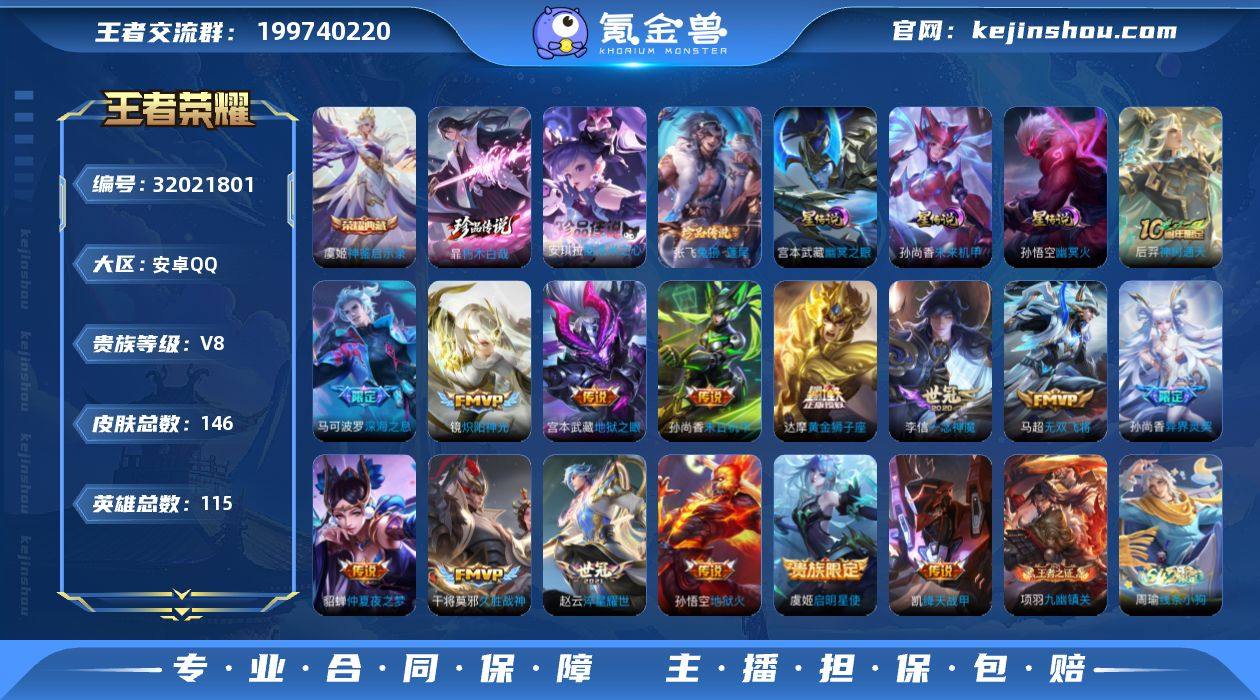 【WZ181044】安卓Q-V8-最强王者段位-115英雄-146皮肤-1典藏皮肤-4珍品传说-16传说-46史诗【英雄全皮】:孙权全皮,敖隐全皮,空空儿全皮【荣耀典藏】:虞姬神鉴启示录【珍品传说】:伽罗沧流箭,暃朽木白哉,安琪拉酷洛米之心,张飞兔狲蓬尾【传说皮肤】:狄仁杰神骥赴朔漠,后羿神树通天,马可波罗深海之息,马超无双飞将,孙尚香异界灵契,赵云淬星耀世,铠绛天战甲,镜炽阳神光,虞姬启明星使,李信一念神魔,干将莫邪久胜战神,达摩黄金狮子座,貂蝉仲夏夜之梦,孙尚香末日机甲,宫本武藏地狱之眼,孙悟空地狱火【限定皮肤】:狄仁杰阴阳师,赵云皇家上将,孙尚香异界灵契,元歌无心,马可波罗深海之息,狄仁杰魔术师,项羽海滩派对,虞姬启明星使,干将莫邪冰霜恋舞曲,艾琳女武神,艾琳流音漫舞【赛季限定】:太乙真人谧流熔炉,钟馗虚灵犬护,甄姬逆浪荇歌,亚瑟荣光之誓,项羽九幽镇关【战令限定】:艾琳流音漫舞,亚连破空之剑,刘禅鸭鸭历险记,沈梦溪鸭鸭历险记,周瑜百相守梦,孙策百相守梦,兰陵王傩神司,莱西奥光弋星穹,明世隐往忆晖光,周瑜线条小狗,小乔线条小狗【史诗皮肤】:周瑜线条小狗,小乔线条小狗,项羽九幽镇关,少司缘巫礼祀神,女娲万灵启世,兰陵王傩神司,莱西奥光弋星穹,公孙离涂山容容,西施织梦人,黄忠百相守梦,周瑜百相守梦,后羿石田雨龙,百里守约雪豹霜爪,狂铁龙之律动,刘禅鸭鸭历险记,阿轲化蝶舞,苍狼魂孤将,亚连破空之剑,莱西奥末日机甲,元歌无心,艾琳奇遇舞章,沈梦溪月团寄思,小乔青蛇,狄仁杰鹰眼统帅,干将莫邪冰霜恋舞曲,孙策猫狗日记,阿轲节奏热浪,程咬金功夫厨神,李元芳逐浪之夏,诸葛亮黄金分割率,兰陵王暗隐猎兽者,小乔缤纷独角兽,夏侯惇乘风破浪,花木兰水晶猎龙者,曹操幽灵船长,吕布圣诞狂欢,妲己女仆咖啡,妲己魅力维加斯,孙尚香水...