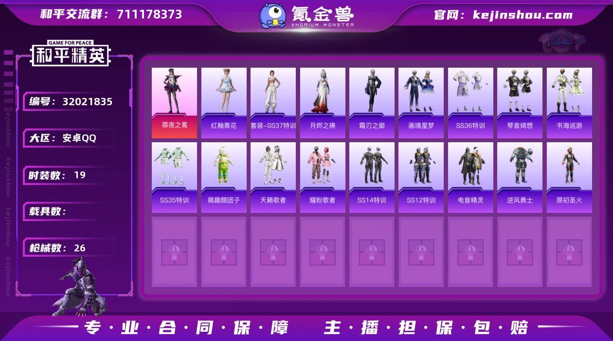 【和平精英】2粉装,5特效枪,0载具,历史最高段位:超级王牌1星 王牌印记2次 热力值:22775,47套装,73枪械,88装备,42战备;套装:角色-绝对恒星,角色-罪夜之冕,套装-竞技名士,套装-长空猛禽,套装-海岛探路者,套装-旭日情侣,套装-特殊使命,套装-酷萌兔限定,套装-甜蜜熊情侣,套装-缤纷果语,套装-破蛋小黄鸡,套装-霓虹街区,套装-萌黄之夏,套装-牛气满满,套装-原初圣火,套装-逆风勇士,套装-萌趣颜团子,套装-狙击之神,套装-SS12特训,套装-牛气冲天,套装-耀粉歌者,套装-飞行日记,套装-SS14特训,套装-天籁歌者,套装-电音精灵,套装-柠萌假日,套装-龙的传人,套装-冰河战士,套装-空岛之星,套装-街头风暴,套装-SS31特训,套装-狂鲨锋刃,套装-SS35特训,套装-琴音绮想,角色-超感刻度,套装-画境星梦,套装-书海巡游,角色-甜心蒙太奇,角色-月烬之祷,套装-SS37特训,套装-SS36特训,角色-霜刃之御,套装-红釉青花,套装-雪国风尚,套装-雨过天青,套装-福马献瑞,套装-马上有钱;枪皮:5级M416-心之恋语,M416-红色方程式,M16A4-夜灯,M16A4-雨过天青,AUG-天降萌叽,AUG-绝对恒星,蜜獾-启元战纹,SCAR-L-红色方程式,SCAR-L-海盐豹豹,AC-VAL-天降萌叽,AKM-破晓战魂,AKM-夜灯,AKM-萌趣颜团子,ACE32-画境星梦,ACE32-冰晶雪宝,QBZ-原初圣火,QBZ-彩虹符号,QBZ-洛神天依,GROZA-福马献瑞,Mk47-洛神天依,M762-牛气冲天,M24-炫彩节奏,AMR-雨过天青,AMR-乌木金纹,Kar98K-彩虹符号,Kar98K-洛神天依,AWM-乌木金纹,Win94-乌木金纹,M200-罪夜之冕,4级Mk14-福马献瑞,Mk14-冰河战士,Mk14-阳光菠萝,M1加兰德-画境星梦,MK20-H-乌木金纹,Mini14-原初圣火,Mini14-炫彩节奏,MK12-乌木金纹,SLR-金丰海韵,SLR-乌木金纹,汤姆逊-炫彩节奏,汤姆逊-天降萌叽,汤姆逊-乌木金纹,M...