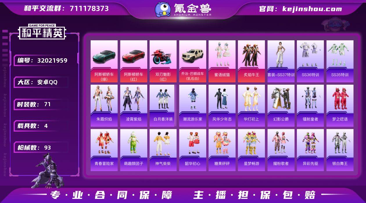 【和平精英】2粉装,3特效枪,4载具,历史最高段位:绝世王牌12星 王牌印记6次 热力值:70162,191套装,210枪械,224装备,128战备;套装:套装-炙焰牛王,套装-蜜语绒猫,套装-特训学院,套装-猎鹰,套装-青年教官,套装-橘黑制服,套装-红色运动,套装-黄色运动,套装-蓝色运动,套装-黄色伏地魔,套装-白色伏地魔,套装-黑色伏地魔,套装-骑行爱好者,套装-深海格斗者,套装-竞技名士,套装-深蓝色名流,套装-酒红色名流,套装-湖蓝色名流,套装-黄色名流,套装-猛禽,套装-棕色飞行服,套装-游猎者,套装-长空猛禽,套装-漫步者,套装-竞技勇士朋克,套装-海岛探路者,套装-雨林探路者,套装-旭日情侣,套装-六六大吉,套装-冷焰舞者,套装-灼焰舞者,套装-刚毅裁决者,套装-特战装甲,套装-战地菁英,套装-战地英姿,套装-战地督导,套装-黄色格斗者,套装-春日漫步,套装-龙腾端午,套装-燃烧卡路里,套装-滨海假日,套装-沙漠毒蛇,套装-苍穹猎鹰,套装-完美偶像,套装-人气偶像,套装-幻影武者,套装-海滨突袭者,套装-特战英豪,套装-街头潮人,套装-蓝彩潮人,套装-神秘领域,套装-决胜时刻,套装-魅力单车,套装-绮丽涂鸦,套装-耀眼新星,套装-坚韧舞者,套装-竞技达人朋克,套装-夜莺强袭者,套装-野性战魂,套装-金羽特工,套装-破晓战魂,套装-都市魅力,套装-荣耀,套装-热血青春,套装-潮流炫酷,套装-沙漠兵团,套装-派对绅士,套装-雪山精英,套装-极地朋克,套装-甜蜜菠萝,套装-半糖蓝莓,套装-机械哨兵,套装-呆萌铁蟹,套装-恒星战甲,套装-午夜朋克,套装-夏日倾情,套装-甜蜜熊情侣,套装-青涩时光,套装-缤纷果语,套装-滨海厨神,套装-特种空勤,套装-和平特警,套装-风暴特警,套装-冰川特警,套装-雷霆特警,套装-元素星魂,套装-幻影公爵,套装-极速红龙,套装-格斗先锋,套装-海上...