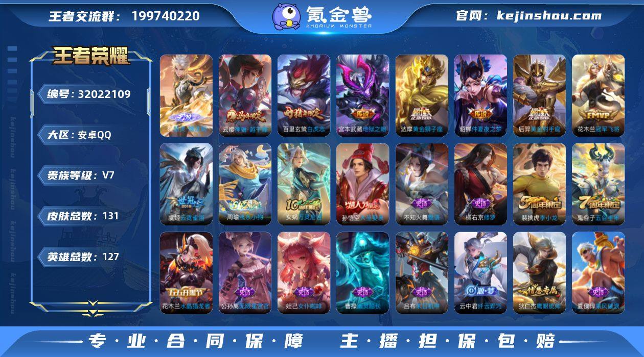 2430116 王者荣耀账号 安卓Q-V7-最强王者段位-127英雄-131皮肤-1无双-8传说-31史诗 【无双皮肤】:曜器灵螭龙剑 【传说皮肤】:云缨神骥越千峰,虞姬云霓雀翎,达摩黄金狮子座,百里玄策白虎志,花木兰冠军飞将,后羿黄金射手座,貂蝉仲夏夜之梦,宫本武藏地狱之眼 【限定皮肤】:狄仁杰阴阳师,赵云皇家上将,墨子神迹守卫,吕布猎兽之王,夏侯惇朔风刀,狄仁杰魔术师,狄仁杰万华元夜,达摩沙漠行僧,项羽海滩派对,老夫子醍醐杖,老夫子航海奇遇记,程咬金演武夺筹,孙悟空大圣娶亲,李元芳云中旅人,钟馗驱傩正仪,东皇太一逐梦之光,鬼谷子原初探秘者,鬼谷子五谷丰年,苏烈千军破阵,百里玄策白虎志,弈星混沌棋,沈梦溪大漠名商,明世隐疑决卦,裴擒虎李小龙,狂铁御狮,米莱狄御霄,云中君纤云弄巧,盾山御銮,上官婉儿梁祝,鲁班大师探海日志,艾琳女武神,张良古海寻踪,鬼谷子天穹祈灯,沈梦溪龙舞盛年 【年限皮肤】:百里玄策白虎志 【赛季限定】:狂铁御狮,米莱狄御霄,盾山御銮,夏侯惇朔风刀,弈星混沌棋,明世隐疑决卦,老夫子醍醐杖,鬼谷子原初探秘者,狄仁杰万华元夜,程咬金演武夺筹,钟馗驱傩正仪,苏烈千军破阵,达摩沙漠行僧,沈梦溪大漠名商,李元芳云中旅人,鲁班大师探海日志,张良古海寻踪,鬼谷子天穹祈灯,甄姬逆浪荇歌,亚瑟荣光之誓 【战令限定】:吕布猎兽之王,老夫子航海奇遇记,墨子神迹守卫,周瑜线条小狗 【史诗皮肤】:周瑜线条小狗,女娲万灵启世,弈星万物之道,鬼谷子五谷丰年,老夫子航海奇遇记,云中君纤云弄巧,裴擒虎李小龙,橘右京修罗,不知火舞魅语,上官婉儿梁祝,公孙离无限星赏官,狄仁杰鹰眼统帅,孙悟空大圣娶亲,东皇太一逐梦之光,白起星夜王子,李元芳逐浪之夏,夏侯惇乘风破浪,刘邦德古拉伯爵,花木兰水晶猎龙者,韩信白龙吟,张飞乱世虎臣,吕布末...