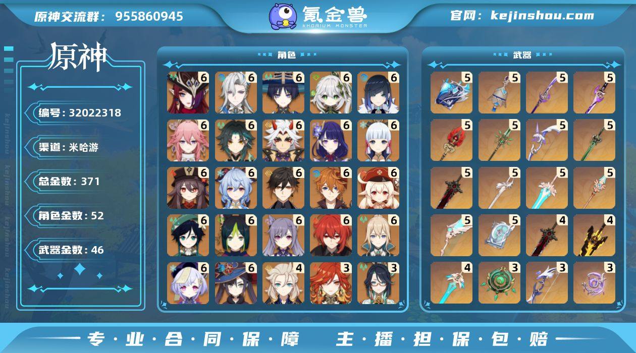 邮箱: 不送邮/死邮 总黄数: 371 冒险等级: 60 6命金色角色: 满命迪卢克,满命温迪,满命神里绫华,满命可莉,满命七七,满命刻晴,满命达达利亚,满命钟离,满命莫娜,满命琴,满命甘雨,满命魈,满命胡桃,满命雷电将军,满命荒泷一斗,满命八重神子,满命夜兰,满命提纳里,满命纳西妲,满命流浪者,满命那维莱特,满命恰斯卡 4命金色角色: 四命阿贝多 3命金色角色: 三命神里绫人,三命闲云,三命玛薇卡 2命金色角色: 二命枫原万叶,二命宵宫,二命芙宁娜 1命金色角色: 一命申鹤,一命玛拉妮,一命梦见月瑞希,一命菲林斯 0命金色角色: 优菈,珊瑚宫心海,赛诺,妮露,艾尔海森,迪希雅,白术,娜维娅,阿蕾奇诺,基尼奇,希诺宁,茜特菈莉,爱可菲,丝柯克,伊涅芙,菈乌玛,奈芙尔,杜林,哥伦比娅 拥有武器: 狼的末路,天空之翼,雾切之回光,飞雷之弦振,四风原典,天空之卷,和璞鸢,阿莫斯之弓,天空之傲,风鹰剑,天空之刃,无工之剑,斫峰之刃,天空之脊,磐岩结绿,护摩之杖,薙草之稻光,不灭月华,苍古自由之誓,终末嗟叹之诗,冬极白星,息灾,赤角石溃杵,神乐之真意,若水,赤沙之杖,圣显之钥,千夜浮梦,图莱杜拉