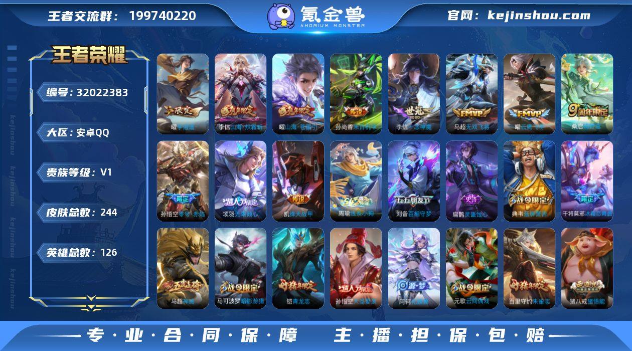 万战曜 背包多一水 安卓Q-244皮肤-11传说-64史诗 【传说皮肤】:桑启鸣野蒿,项羽无限倾心,曜山海苍雷引,李信山海炽霜斩,马超无双飞将,曜李逍遥 ,铠绛天战甲,孙悟空零号赤焰,曜云鹰飞将,李信一念神魔,孙尚香末日机甲 【限定皮肤】:姜子牙天穹之誓,狄仁杰阴阳师,赵云皇家上将,墨子神迹守卫,孙尚香蔷薇恋人,庄周高山流水,芈月重明,元歌云间偶戏,元歌无心,夏侯惇朔风刀,典韦穷奇,典韦蓝屏警告,马可波罗暗影游猎,狄仁杰魔术师,狄仁杰万华元夜,达摩星际陆战队,达摩沙漠行僧,项羽海滩派对,项羽无限倾心,老夫子醍醐杖,老夫子航海奇遇记,程咬金演武夺筹,王昭君午后时光,兰陵王金庭之子,亚瑟潮玩骑士王,孙悟空大圣娶亲,孙悟空零号赤焰,牛魔御旌,后羿圣弓游侠,刘备百相守梦,李元芳云中旅人,钟馗驱傩正仪,女娲朔望之晖,干将莫邪冰霜恋舞曲,干将莫邪真爱魔法,雅典娜单词大作战,雅典娜黎明之约,蔡文姬繁星吟游,鬼谷子原初探秘者,鬼谷子五谷丰年,铠青龙志,苏烈千军破阵,百里玄策原初追逐者,百里守约朱雀志,弈星混沌棋,梦奇顽趣,沈梦溪大漠名商,明世隐疑决卦,裴擒虎李小龙,裴擒虎擒涛扼浪,狂铁御狮,狂铁电玩高手,米莱狄御霄,米莱狄胡桃异想国,云中君纤云弄巧,李信山海炽霜斩,盾山御銮,猪八戒西部大镖客,猪八戒猪悟能,上官婉儿梁祝,嫦娥暖冬兔眠,曜李逍遥 ,曜山海苍雷引,蒙犽狂想玩偶喵,鲁班大师探海日志,桑启海盐诗旅,暃星界游侠,艾琳女武神,张良古海寻踪,蒙恬荣光圣徽,鬼谷子天穹祈灯,姬小满妄想食味,周瑜熔金海岸 【年限皮肤】:百里守约朱雀志,铠青龙志,曜山海苍雷引,李信山海炽霜斩 【赛季限定】:芈月重明,典韦穷奇,狂铁御狮,米莱狄御霄,牛魔御旌,盾山御銮,夏侯惇朔风刀,弈星混沌棋,明世隐疑决卦,老夫子醍醐杖,鬼谷子原初...