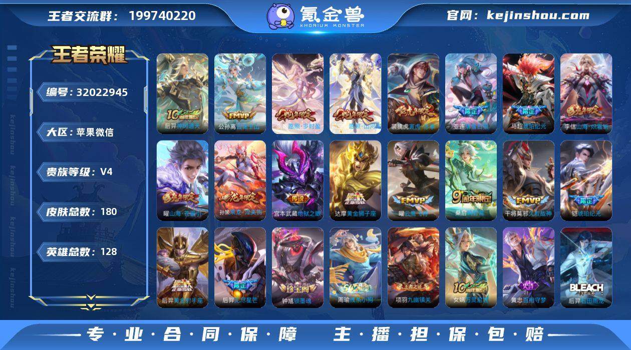 贵族等级:V4 典藏皮肤数:0 珍品无双皮肤数:0 无双皮肤数:0 珍品传说皮肤数:0 传说皮肤数:18 史诗皮肤数:49 皮肤数:180 英雄数:128 段位:星耀