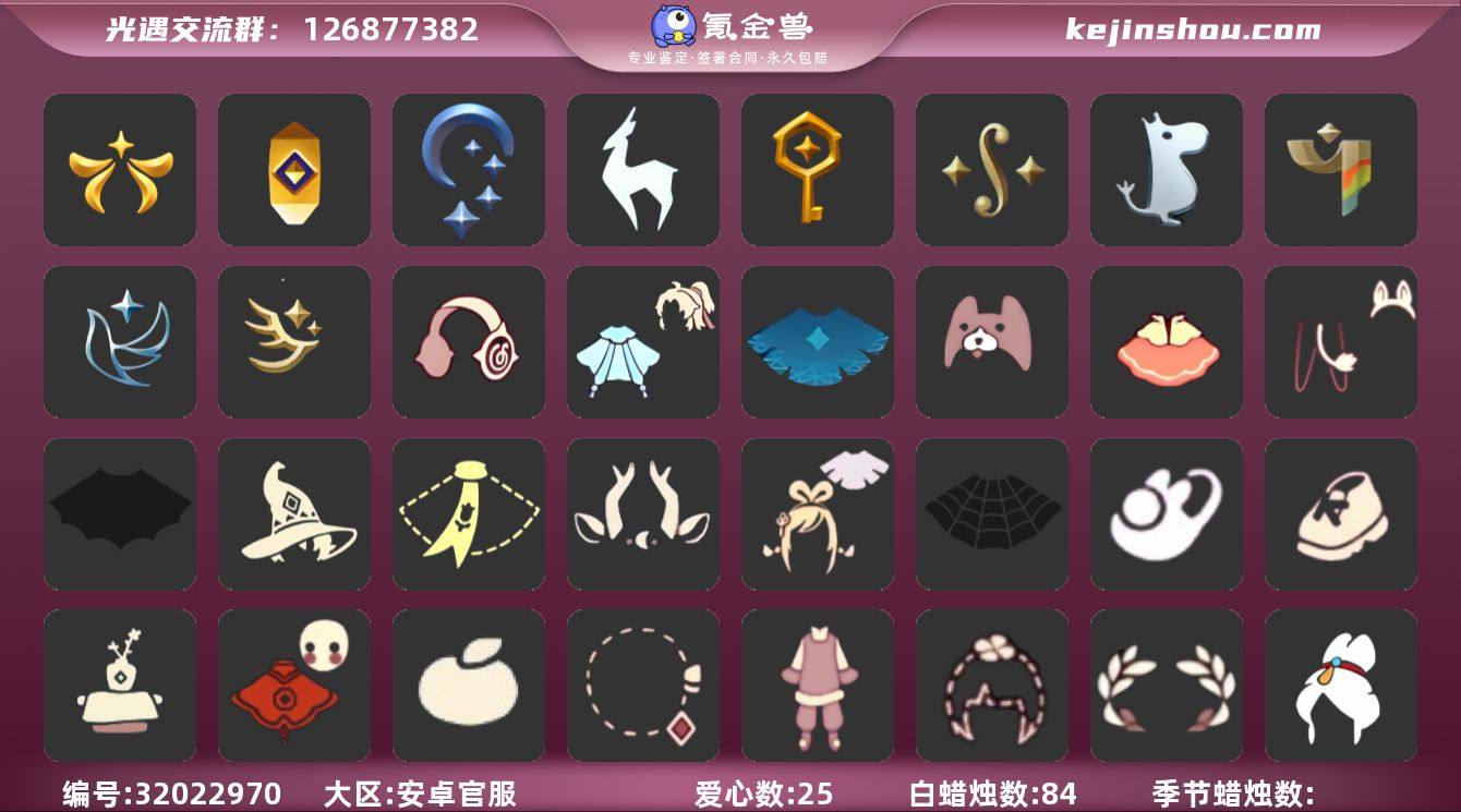 9季10翼牛仔帽巫师帽九色鹿鹿角橘子发饰献瑞折扇美工衣盲僧眼罩详情看图 资源: 蜡烛12 爱心 55 红烛72 翼 10 已毕业地图:全图毕业 毕业季节: 拾光季 归巢季 九色鹿季 筑巢季 二重奏季 姆明季 彩染季 半青鸟季 风行季季卡 毕业季节物品: 粗框眼镜 季卡相机 西部帽 五塑彩羽发 五塑彩带斗 九色鹿丸子头 九色鹿丝带裤 九色鹿飞天斗篷 设计师长袍 光之子试衣 合奏挂画 蓝色燕尾服 白色高脚钢琴 姆明抱枕 姆明大伞 姆明长裙 彩染围巾斗篷 辉光羚羊面具 稀有礼包:大桔大利 巫师帽 星月头冠 九色鹿角 献瑞折扇 热门裤子:遥鲲长袍 奔月长袍 妮妮长裙 海洋武士裤 白棉裤 搓澡巾 紧身连体衣 武士裤 美工衣 探险燕尾服 热门面具:矮人面具 黄鼠狼面具 盲僧眼罩 青鸟面具 向导面具 龙头 玫瑰花面具 玫瑰面具 黑脸 鸟羽面具 热门发型:海藻头 爆炸头 大胡子 小飞象 雨妈 卡卡 平菇 龙骨 指甲盖 箬笠 蝴蝶结 公主头 粗辫 水母头 书虫 总裁头 正太头 高马尾 帽子 郡主头 虚荣 圆环发辫 彩色脏辫 彩羽发型 双辫发型 春丽丸子头 樱花 海洋发型 巫师帽 猫猫头 女巫发型 绊爱发型 热门头饰: 尖角牛仔帽 牛仔帽 大橘大利 花环 珊瑚发饰 雪花发夹 晃悠悠 红耳机 星月头冠 九色鹿鹿角 探险耳机 热门斗篷:五角星斗篷 红金斗篷 黑金斗篷 白金斗篷 汉服斗篷 展翼圆环斗 布丁斗篷 布条斗篷 才慈爱斗篷 国风斗篷 灰色斗篷 双排扣斗篷 史力奇 斗篷 姆明季斗篷 镂空斗篷 镂空三条斗 彩染季围巾斗篷 星空斗篷 新年福娃斗篷 樱花斗篷 马蹄莲斗篷 绿芽 海洋斗篷 漩涡斗篷 水纹斗篷 彩虹斗篷 暗彩斗篷 透明蛛丝斗篷 绊爱斗篷 热门背饰:号角...